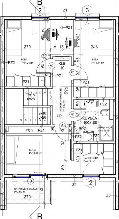 Zum Verkauf steht eine zweigeschossige Vierzimmerwohnung mit einer Gesamtfläche von 112,08 m² in Rugvica.