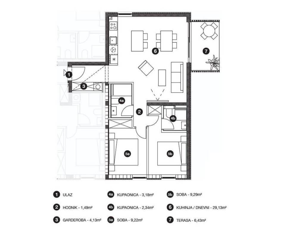 In einer ruhigen und angenehmen Siedlung auf der Insel Hvar, die für ihre geschützte Bucht und ihren gepflegten Yachthafen bekannt ist, entsteht ein neues Wohnprojekt mit insgesamt 16 Wohnungen. Im zweiten Stock des Gebäudes A befindet sich die Wohnung S6. Sie besteht aus einem Eingangsbereich mit Garderobe, einem offenen, geräumigen Wohnbereich mit Esszimmer und Küche, von dem aus man auf eine überdachte Terrasse gelangt. Daran schließen sich ein Badezimmer und ein Flur an, der zu zwei Schlafzimmern führt, von denen eines über ein eigenes Badezimmer verfügt. Die Wohnung ist nach drei Seiten ausgerichtet (NW–SW–NO), was den ganzen Tag über viel Tageslicht und eine angenehme Luftigkeit und Offenheit des Raumes gewährleistet. Für die Konstruktion wurden hochwertige Materialien verwendet: erstklassige Keramik, Stahlbetonkonstruktion, Fassadensystem mit Wärmedämmung, Dreifachverglasung, elektrische Rollläden, Fußbodenheizung in den Badezimmern und Klimaanlage. Das Projekt bietet Außenparkplätze, teilweise überdacht. Die Fertigstellung ist für Frühsommer 2026 geplant. Das Projekt befindet sich in ruhiger Lage, nur 300 Meter vom Meer entfernt, in unmittelbarer Nähe zu allen Annehmlichkeiten – Geschäften, Restaurants, Cafés, Jachthafen und Promenade. Dank seiner Lage, der dreiseitigen Ausrichtung und des angenehmen Ambientes eignet sich dieser Ort ideal zum ganzjährigen Wohnen, aber auch als sichere Investition für die touristische Vermietung. * Preis inkl. MwSt. – der Käufer ist von der Zahlung der Grundsteuer befreit.