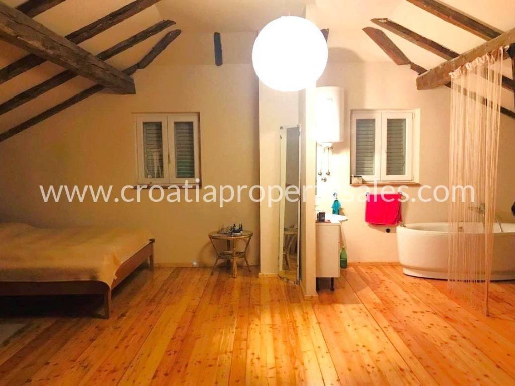 Ein geräumiges, altes Familienhaus im Herzen der Riviera von Kaštela steht zum Verkauf.Das Haus wurde 1939/40 erbaut und vom jetzigen Eigentümer kürzlich umfassend und hochwertig renoviert. Es verfügt über ein neues Ziegeldach und PVC-Fenster an allen Seiten.Das Haus bietet eine Gesamtfläche von 190 m2 auf drei Etagen.Das Erdgeschoss ist in zwei Bereiche unterteilt:1. einen 40 m2 großen Gewerberaum mit separatem Eingang von der Straße, der vermietet oder gewerblich genutzt werden kann, sowie ein kleines WC; 2. eine moderne Küche und ein elegantes Wohn-/Esszimmer mit separatem Zugang zum Garten.Im Obergeschoss befinden sich drei Schlafzimmer und ein Hauswirtschaftsraum mit Zugang zu einer 25 m2 großen, nach Norden ausgerichteten Veranda. Der Hauswirtschaftsraum kann problemlos in eine weitere Küche umgewandelt werden, da Wasser- und Abwasseranschlüsse in der Nähe vorhanden sind.Das Hauptschlafzimmer verfügt über eine Klimaanlage und Zugang zu einem großen, 17 m2 großen Balkon mit Blick auf den privaten Garten. Das ausgebaute Dachgeschoss umfasst 60 m2 und bietet einen offenen Wohn-/Schlafbereich mit eigenem Badezimmer.Zwischen dem ersten und zweiten Stock befindet sich das kürzlich renovierte Hauptbadezimmer mit komplett neuer Ausstattung.Das Haus verfügt über einen 65 m2 großen Privatgarten mit Obstbäumen und Blumen – ideal für eine entspannte Nachmittagspause oder ein Familientreffen.Zum Haus gehört eine private Garage (25 m2). Das Haus liegt in einer ruhigen Straße in der Nähe aller Annehmlichkeiten; das Meer ist ca. 300 m entfernt.