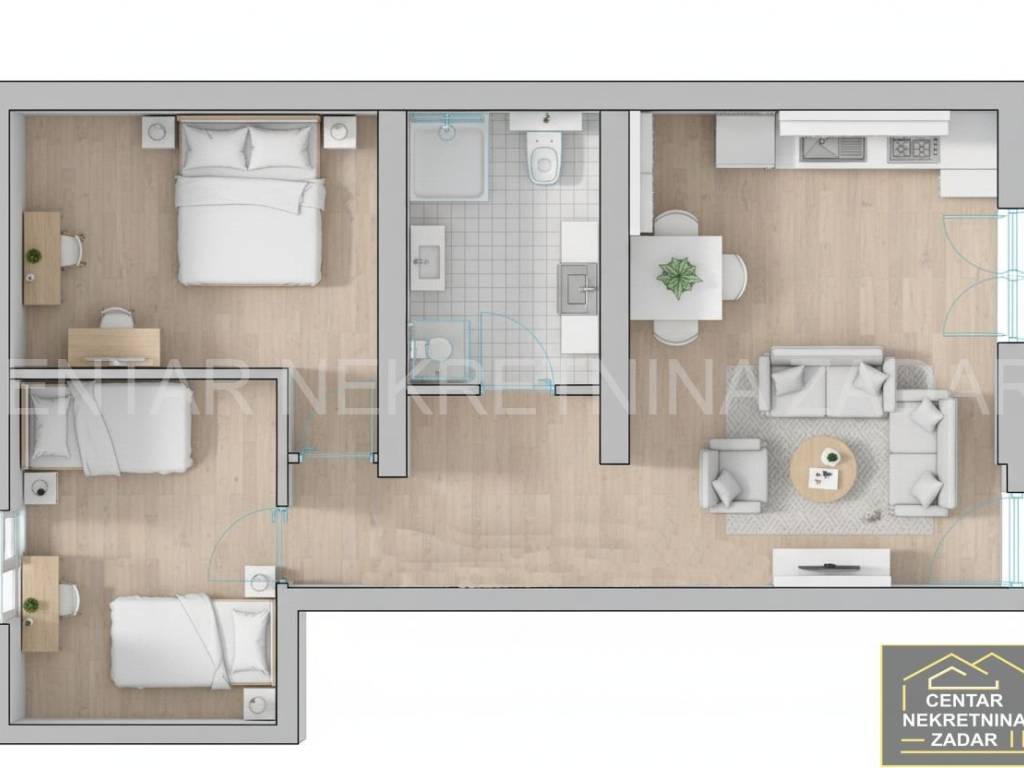 Two-bedroom apartment on the ground floor of a small building with 4 apartments under reconstruction/new construction on a turnkey basis (everything except the kitchen and furniture). The living space has an area of 52m2 and consists of a central living room, dining room and kitchen, hallway, bathroom and two bedrooms, a partially covered terrace and garden area. The apartment includes a 2m2 storage room in the storage area and an outdoor parking space (right next to the garden area). The living space is completely renovated and partially newly built. Sophisticated insulating hydro and thermal materials were used, top-quality PVC joinery, 10 cm polystyrene facade, bathroom appliances, Italian REFIN tiles, Mitsubishi air conditioners, etc. The apartment is located in a quiet and pleasant street in the Brodarica settlement, protected from city noise. There is a school and numerous amenities that make everyday life easier in the immediate vicinity. It is an ideal location for a family and anyone who wants comfort, convenience and peace in everyday life. The building has all the documentation, necessary permits and the ownership is in order. The price of the apartment includes an outdoor parking space, storage room and garden. For more information, contact us.