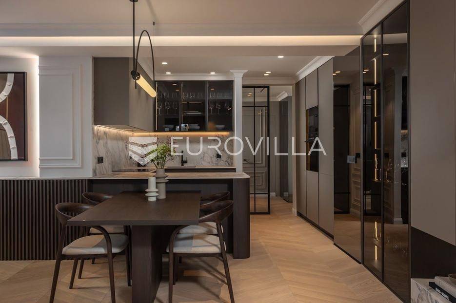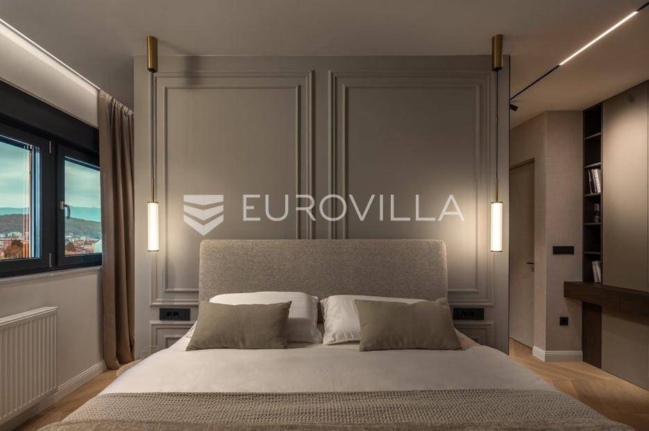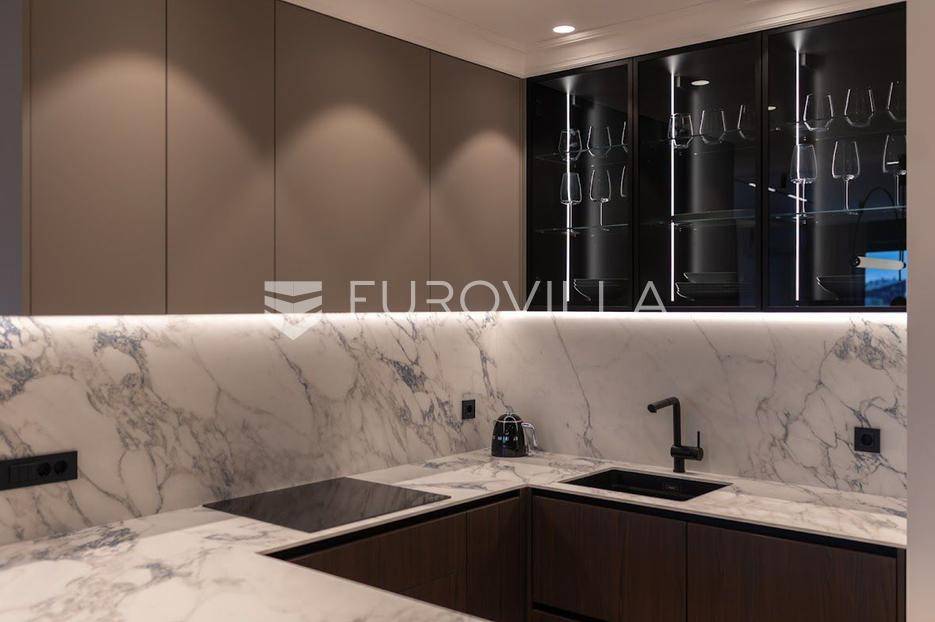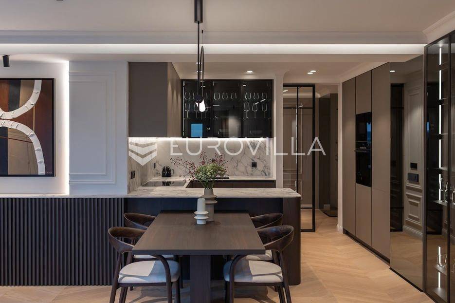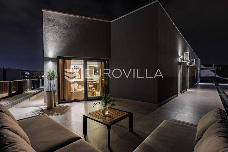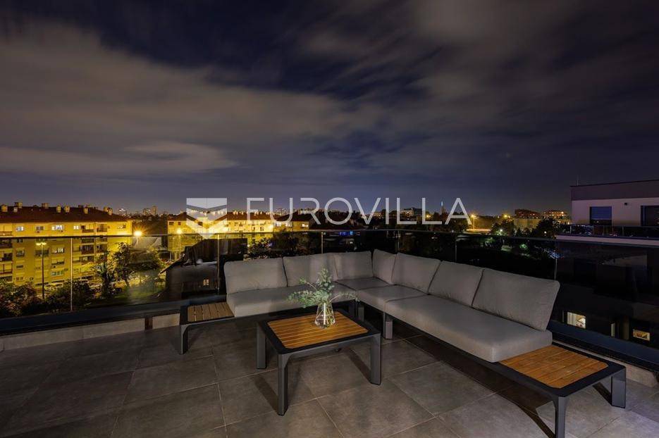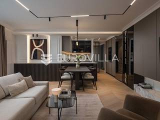 Profinjen penthouse koji zauzima cijeli kat moderne novogradnje u mirnom i uređenom dijelu Zagreba. Riječ je o potpuno novom, neuseljenom stanu koji nudi 191,40 m² vrhunski oblikovanog interijera, uz dodatnih 107 m² terasa - djelomično natkrivenih, djelomično otvorenih, idealnih za uživanje u privatnosti i pogledu. Uz stan dolaze i spremište površine 13,10 m² te garažno mjesto u podrumu zgrade. Ukupno obračunski NKP je 249,42 m2.Posebnu ekskluzivnost daje činjenica da je cijeli kat rezerviran isključivo za ovaj stan. Lift iz garaže vodi direktno u privatni ulaz, čime se postiže osjećaj intimnosti kakav se rijetko nalazi u gradskim novogradnjama. Sama zgrada je suvremenije gradnje, opremljena novim Kone liftom iz 2024. godine, sustavom videonadzora i modernim sigurnosnim rješenjima.Interijer je dizajniran s naglaskom na estetiku, udobnost i luksuz. Korišteni su vrhunski materijali - od elegantnog Chevron Boen parketa i aluminijske stolarije s troslojnim staklima, do integrirane LED rasvjete koja prostoru daje ugodnu toplinu i sofisticiran ambijent. Vrata su visokokvalitetne izrade, uključujući staklena Fablab vrata te invisible modele u hodniku. Sve kupaonice imaju podno grijanje i dizajnersku sanitarnu opremu izrađenu po mjeri.Stan je u potpunosti klimatiziran, a u dnevnom dijelu nalazi se i moderan bioetanol kamin. Kuhinje su izrađene po mjeri, opremljene premium uređajima i elegantno povezane s ostatkom dnevnog prostora. U master spavaćoj sobi nalazi se veliki walk-in ormar s touch rasvjetom, dok su spavaći prostori opremljeni visokokvalitetnim krevetima Perfecta & Dreams. Dodatni detalji poput vinskog ormara, Samsung Frame TV-a od 65", umjetničkih slika s LED rasvjetom i posebno uređenog make-up kutka stvaraju jedinstven osjećaj luksuza.Prostrane terase okružuju stan sa svih strana, pružajući obilje prirodnog svjetla i panoramski pogled od 360°. Svaka soba u stanu ima izlaz na vanjski prostor, što omogućuje savršen protok zraka i povezanost interijera s eksterijerom.Ovaj penthouse nudi iznimnu fleksibilnost - može funkcionirati kao jedna velika luksuzna cjelina, ali se lako može prilagoditi i kao više odvojenih jedinica, što ga čini idealnom opcijom za investiciju, najam ili kombinaciju poslovnog i stambenog prostora.Nalazi se u mirnoj ulici na zapadnoj strani grada, u okruženju koje kombinira sigurnost i privatnost s neposrednom blizinom tramvaja, autobusa, škola, parkova i trgovina. Odlična prometna povezanost sa Zagrebačkom i Slavonskom avenijom te brzi pristup centru grada dodatno podižu vrijednost ove nekretnine.Za sva pitanja Vam stojimo na raspolaganju.