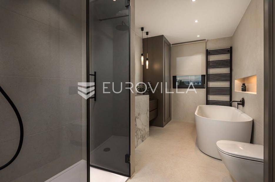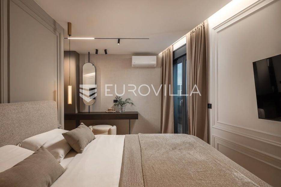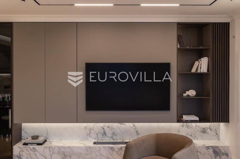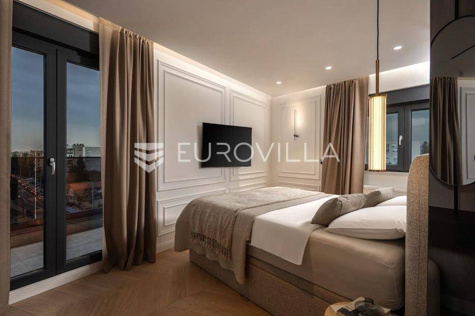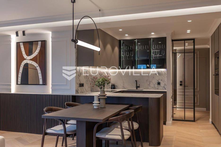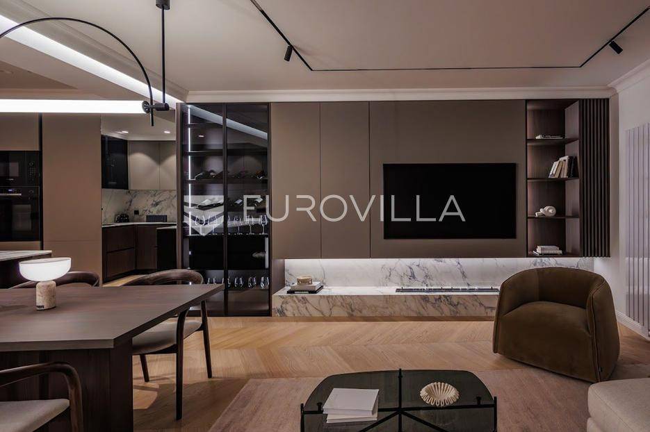 Profinjen penthouse koji zauzima cijeli kat moderne novogradnje u mirnom i uređenom dijelu Zagreba. Riječ je o potpuno novom, neuseljenom stanu koji nudi 191,40 m² vrhunski oblikovanog interijera, uz dodatnih 107 m² terasa - djelomično natkrivenih, djelomično otvorenih, idealnih za uživanje u privatnosti i pogledu. Uz stan dolaze i spremište površine 13,10 m² te garažno mjesto u podrumu zgrade. Ukupno obračunski NKP je 249,42 m2.Posebnu ekskluzivnost daje činjenica da je cijeli kat rezerviran isključivo za ovaj stan. Lift iz garaže vodi direktno u privatni ulaz, čime se postiže osjećaj intimnosti kakav se rijetko nalazi u gradskim novogradnjama. Sama zgrada je suvremenije gradnje, opremljena novim Kone liftom iz 2024. godine, sustavom videonadzora i modernim sigurnosnim rješenjima.Interijer je dizajniran s naglaskom na estetiku, udobnost i luksuz. Korišteni su vrhunski materijali - od elegantnog Chevron Boen parketa i aluminijske stolarije s troslojnim staklima, do integrirane LED rasvjete koja prostoru daje ugodnu toplinu i sofisticiran ambijent. Vrata su visokokvalitetne izrade, uključujući staklena Fablab vrata te invisible modele u hodniku. Sve kupaonice imaju podno grijanje i dizajnersku sanitarnu opremu izrađenu po mjeri.Stan je u potpunosti klimatiziran, a u dnevnom dijelu nalazi se i moderan bioetanol kamin. Kuhinje su izrađene po mjeri, opremljene premium uređajima i elegantno povezane s ostatkom dnevnog prostora. U master spavaćoj sobi nalazi se veliki walk-in ormar s touch rasvjetom, dok su spavaći prostori opremljeni visokokvalitetnim krevetima Perfecta & Dreams. Dodatni detalji poput vinskog ormara, Samsung Frame TV-a od 65", umjetničkih slika s LED rasvjetom i posebno uređenog make-up kutka stvaraju jedinstven osjećaj luksuza.Prostrane terase okružuju stan sa svih strana, pružajući obilje prirodnog svjetla i panoramski pogled od 360°. Svaka soba u stanu ima izlaz na vanjski prostor, što omogućuje savršen protok zraka i povezanost interijera s eksterijerom.Ovaj penthouse nudi iznimnu fleksibilnost - može funkcionirati kao jedna velika luksuzna cjelina, ali se lako može prilagoditi i kao više odvojenih jedinica, što ga čini idealnom opcijom za investiciju, najam ili kombinaciju poslovnog i stambenog prostora.Nalazi se u mirnoj ulici na zapadnoj strani grada, u okruženju koje kombinira sigurnost i privatnost s neposrednom blizinom tramvaja, autobusa, škola, parkova i trgovina. Odlična prometna povezanost sa Zagrebačkom i Slavonskom avenijom te brzi pristup centru grada dodatno podižu vrijednost ove nekretnine.Za sva pitanja Vam stojimo na raspolaganju.