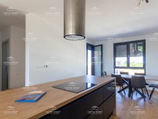 Prodajemo četverosoban stan na odličnoj lokaciji u Puli. Stan se nalazi na drugom te ujedno i zadnjem katu stambene zgrade. Nekretnina se sastoji od ulaznog prostora s desne strane open space dnevnog boravka s kuhinjom i blagovaonom iz koji je izlaz na terasu s predivnim pogledom na prirodu. Dok se s ljeve strane nalaze tri komforne spavaće sobe od kojih jedna ima izlaz na terasu te dvije prostrane kupaone. Stanu pripadaju dva parkirna mjesta u dvorištu zgrade kao i jedna ostava u prizemlju. U cijelom stanu je postavljeno električno podno grijanje te svaka prostorija ima klima uređaji. Stan je kompletno opremljen kvalitetnim namještajem po mjeri te se kao takav i prodaje. Vlasništvo uredno 1/1, tereta nema. Više informacija na capitalinvest.hr