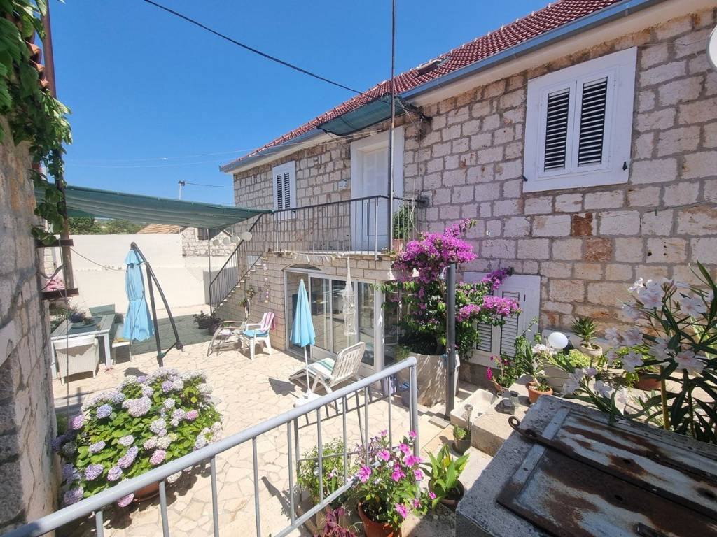This interesting property is in a quiet village not far from the Marina, and is situated in an excellent location, first row to the sea. On a plot of 518 m2 there are two residential buildings and one auxiliary building.The main building is a typical Dalmatian stone house of approximately 220 m2. It has two floors: ground floor and first floor. The ground floor has a living room, kitchen with dining room and three large rooms that are currently used as a storage room, tavern and wine cellar. The first floor is accessed by an external staircase, and there is a comfortable apartment with a living room, kitchen, bathroom and four spacious bedrooms. The kitchen opens onto a balcony with a stunning view of the beach and the sea.The second residential building located opposite the main stone house has a total gross construction area of 191 m2 and consists of a ground floor and first floor. On the ground floor there is an apartment with a spacious living room, kitchen and dining room, bathroom and one spacious bedroom (45.89 m2) and a covered terrace (14.79 m2). On this floor there is also a garage (25.57 m2) and a small storage room.On the first floor there is an unfurnished space (74.30 m2) with access to a loggia (13.47 m2). The loggia offers a beautiful sea view. This floor requires completion.Auxiliary building is a small stone house with a floor area of 32 m2. It has two rooms, one with a bathroom and the other with a fireplace. This cute house is ideal for conversion into a small studio apartment.The landscaped and fenced yard provides complete privacy. The paved courtyard and carefully maintained garden are abundant with fruit trees, vegetables and Mediterranean herbs, creating an idyllic ambiance.Property requires some investment and finishing work, but this is a rare opportunity on the market – a property with exceptional potential for tourist rental or a family oasis. Thoughtful renovation can significantly increase the value of the entire complex, with the possibility of generating excellent income.The property is only 6 km from the Marina, 19 km from Trogir and 25 km from Split Airport.