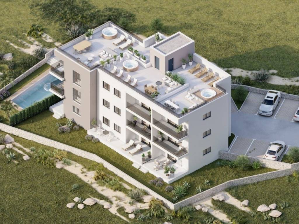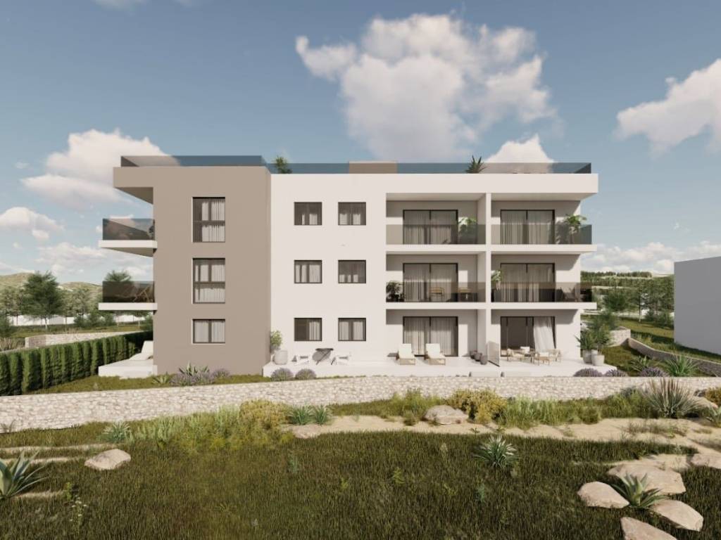 For sale are seven apartments in a residential building under construction, which contains three floors: ground floor, first floor and second floor. The apartments consist of a living room, kitchen, dining room, two bedrooms, bathroom, toilet and loggia. Each of them have one outdoor parking space. The apartments on the second floor also have roof terraces. The area of the apartments ranges from 60 m2 to 83 m2. They will be equipped with underfloor heating in the bathroom, air conditioning in the living room, while the bedrooms will have air conditioning installations. The building also has a shared swimming pool. The planned completion date is June 2026. The property is located in a quiet area, not far from the center of the village and important facilities for life. It is approx. 600 m from the sea and beach, 4 km from Trogir, and 9 km from Split airport.GROUND FLOORAPARTMENT 1 - living area of 70.79 m2 + loggia 11.75 m2 + parking space. Price: 278,600 €FIRST FLOORAPARTMENT 4 - living area 70.79 m2 + loggia 8.81 m2 + parking space. Price: 286,560 €APARTMENT 5 - living area 52.19 m2 + loggia 8 m2 + parking space. SOLDAPARTMENT 6 - living area 56.51 m2 + loggia 8.80 m2. m2 + parking space. Price: 227,196 €SECOND FLOORAPARTMENT 7 - living area 70.79 m2 + loggia 11.02 m2 + roof terrace. Price: 385,000 €APARTMENT 8 - living area 51.29 m2 + loggia of 8 m2 + roof terrace. Price: 335,000 €APARTMENT 9 - living area of 56.51 m2 + loggia of 8.80 m2 + roof terrace. Price: 355,000 €