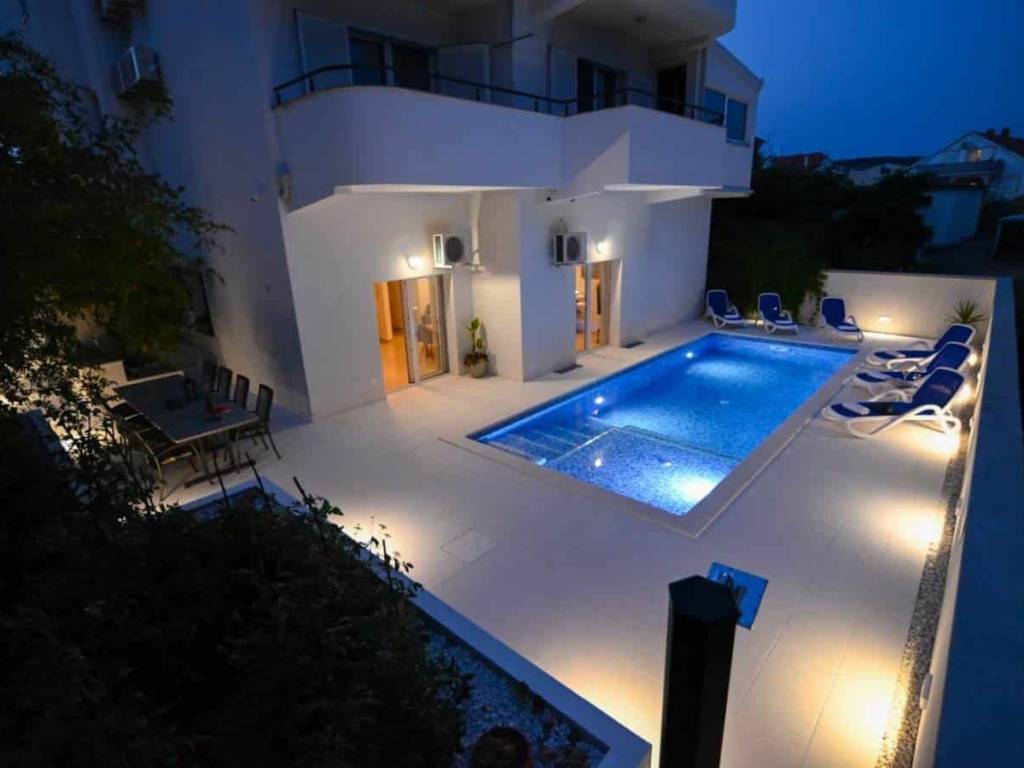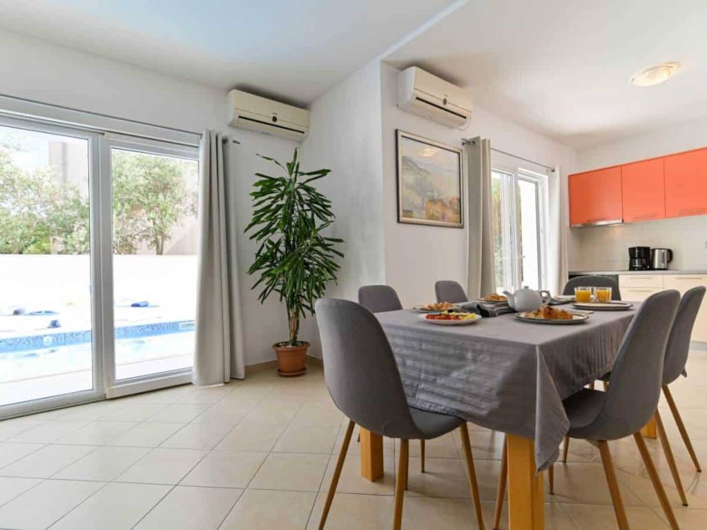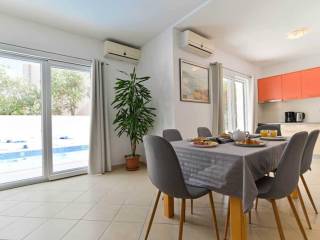 For sale are a two-bedroom apartment and a studio apartment on the ground floor of a smaller residential building. The apartments have a common entrance so they can be used as a whole or each separately as independent units.A two-bedroom apartment with an internal floor area of 83 m2 consists of a living room, a kitchen, a dining room, two bedrooms, a toilet and two bathrooms. The apartment also includes two taverns and a storage room with a total floor area of 40 m2 located in the basement of the building. The taverns are currently used as wine cellars, but can be converted into a fitness or wellness area. The studio apartment has an area of 25 m2.The two-bedroom apartment and the studio apartment have access to a spacious fenced yard of 166 m2. In the yard there is a swimming pool with a sunbathing area and an outdoor grill. Two outdoor parking spaces also belong to this property.The property is oriented towards the south, which provides it with sunshine, warmth and airiness throughout the day. It is selling fully furnished and equipped.In addition to living throughout the year, this property is also suitable as an investment, because it achieves good financial results by renting it out for tourist purposes.The building is in an excellent location in a quiet area of the village, but still close to all essential amenities, only 300 m from the sea. The distance from Trogir is 4 km, from Split airport 8 km, and from the center of Split 30 km.