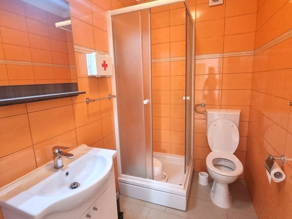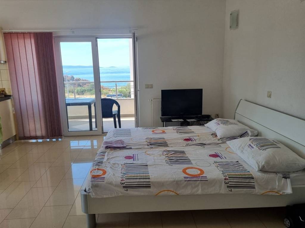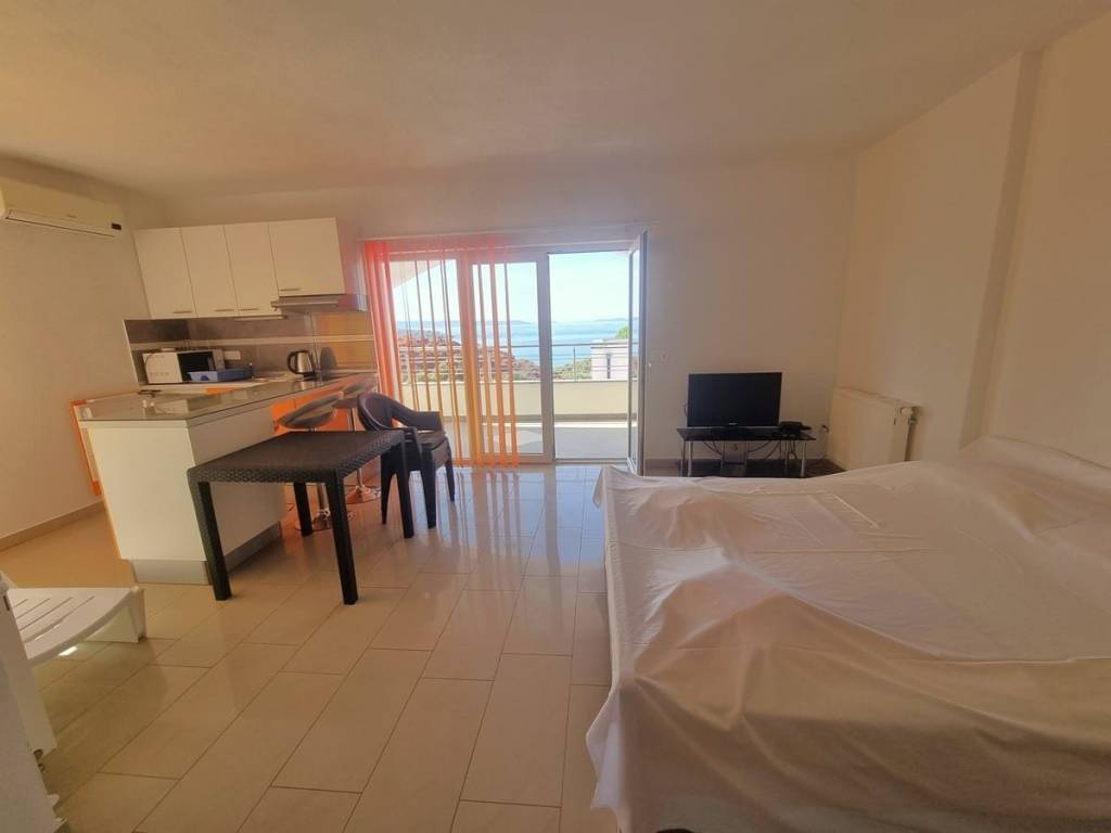 This house with a total gross construction area of 345 m2 is located on a plot of land of 586 m2. It contains four floors: basement, ground floor, first and second floor.There is a spacious garage in the basement. A small part of the garage has been converted into a bedroom and a bathroom.Ground floor, first and second floor contain a two bedrooms apartment each. Each apartment is now converted into one studio apartment and apartment with one bedroom. All apartments have access to the terrace. The apartments offer a beautiful open sea view. The house is maintained, well equipped and furnished and is being sold as such. All rooms in the house are air-conditioned. In the next year, the seller plans to restore the facade and install shutters. The property offers 4 outdoor parking spaces, as well as enough space to build a swimming pool.The house is 1 km from the center of the village and the sea, 4 km from the city of Trogir, and 9 km from Split airport.
