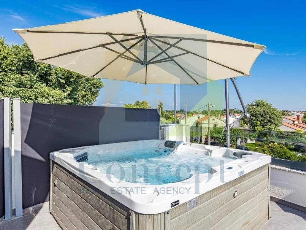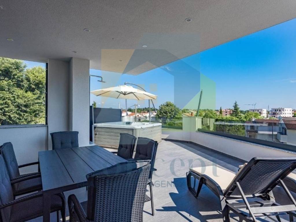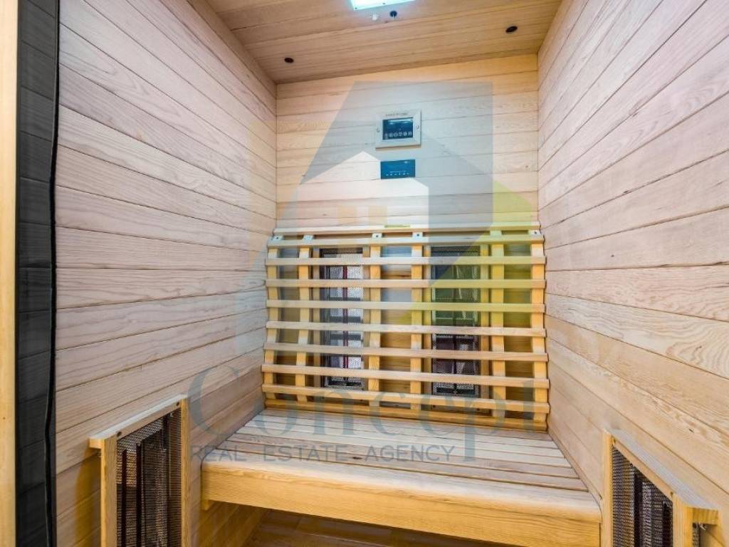 Für zusätzlichen Luxus gibt es einen Jacuzzi auf der geräumigen Terrasse sowie eine Sauna, die vollständige Entspannung ermöglichen. Neue, moderne Möbel, hochwertige Geräte sowie weitere Ausstattung der Wohnung sind im Preis inbegriffen.