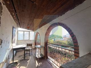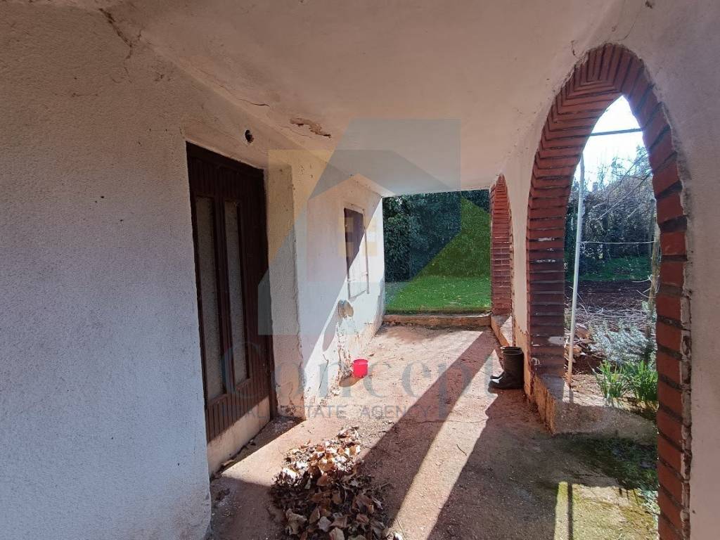 Das Haus ist Doppelhaus, hat zwei Etagen und eine Grundfläche von etwa 40 m, gelegen auf einem Grundstück von 315 m. Vor dem Haus befindet sich ein überdachter Bereich, der als Veranda dient, sowie Treppen, die zur oberen Etage führen. Obwohl das Haus grundsätzlich gut positioniert ist, benötigt es eine vollständige Renovierung, um modernen Standards gerecht zu werden.