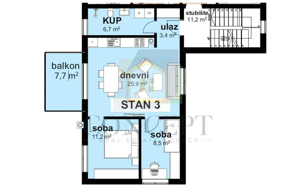 Zu verkaufen ist eine Wohnung im ersten Stock eines Neubaus in einem kleinen Wohngebäude mit insgesamt acht Wohnungen, gelegen in einer gepflegten Siedlung mit kompletter Infrastruktur. Die Lage ist ideal für das tägliche Leben und touristische Vermietung alle notwendigen Einrichtungen wie Geschäfte, Schulen, Kindergärten und Restaurants befinden sich in der Fußgängerzone, und das Meer ist nur 3 km entfernt.