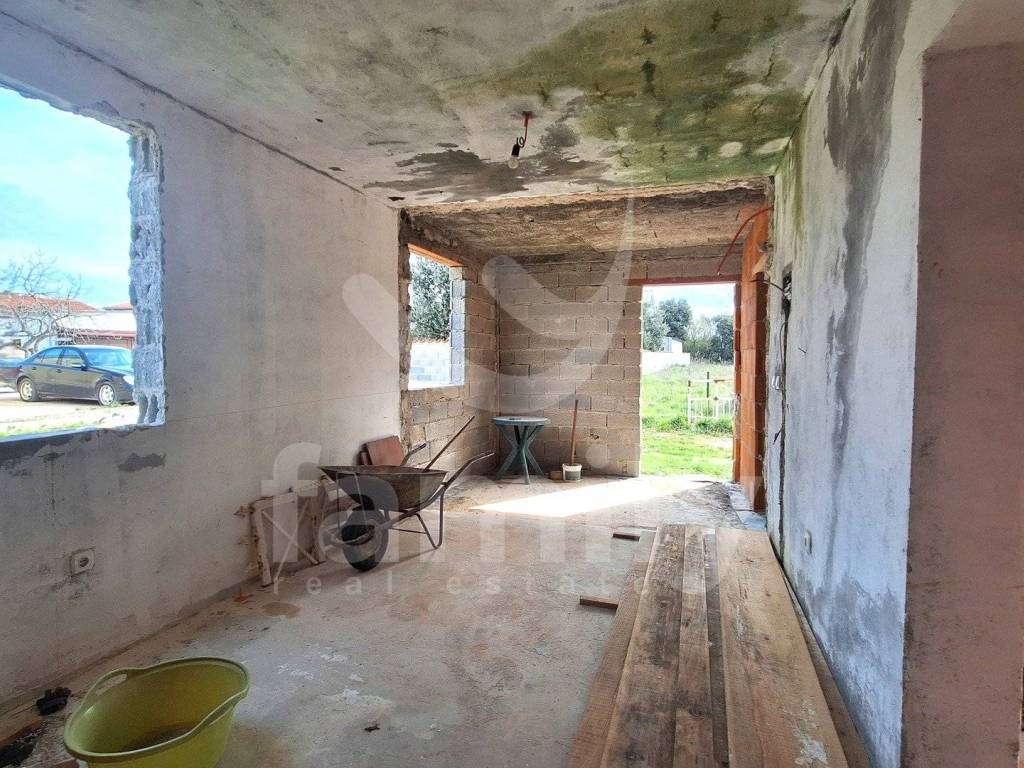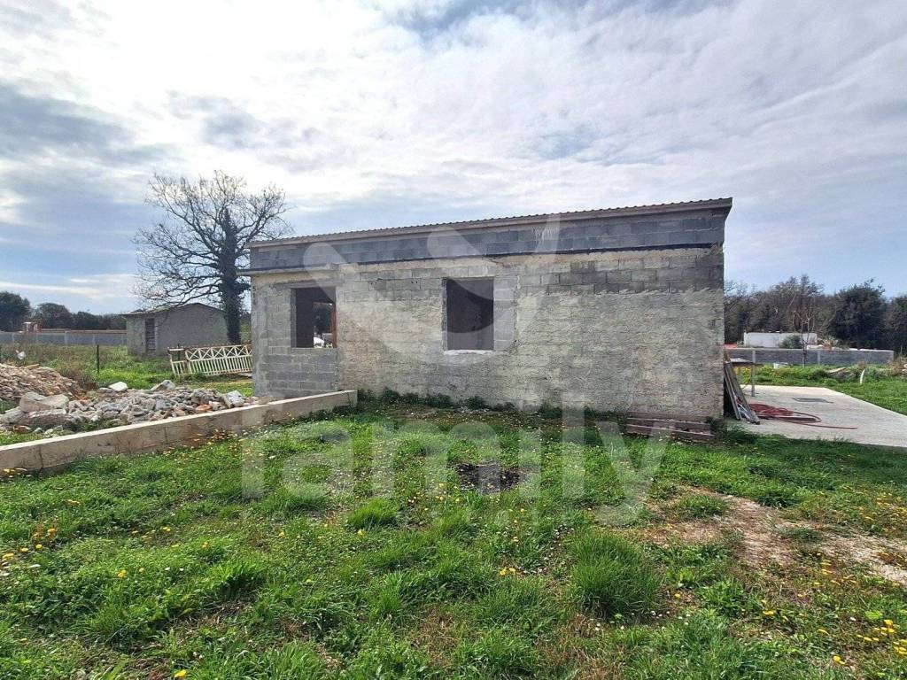 Dieses freistehende einstöckige Haus mit einer Gesamtfläche von 57 m2 befindet sich in Šišan und befindet sich derzeit in der Rohbauphase. Das renovierungsbedürftige Objekt befindet sich auf einem großzügigen Grundstück mit 497 m2. Das Haus verfügt über eine Lösung für den Stromanschluss und eine Hausnummer, und auf dem Grundstück gibt es einen Wasserbrunnen sowie eine Klärgrube mit einer Fläche von 24 m3. Es wurden auch Stahlbetonplatten hergestellt.