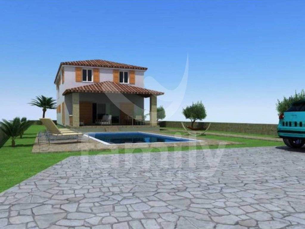 Baugrundstück mit einer Gesamtfläche von 784 m2 befindet sich in einem ruhigen Dorf innerhalb der Gemeinde Barban. Das Grundstück hat eine rechteckige Form mit sanfter Neigung und direktem Zugang von einer asphaltierten Straße. Für das oben genannte Grundstück liegen ein Masterplan und eine gültige Baugenehmigung für eine freistehende Villa mit Swimmingpool vor, die aus Erdgeschoss und Obergeschoss bestehen würde. Dem Projekt zufolge besteht das Erdgeschoss aus einem offenen Wohnzimmer mit Küche und Esszimmer, das auf eine geräumige Terrasse führt, einer Toilette, einem Schlafzimmer mit eigenem Bad, einem Abstellraum, einem Flur und einer Treppe, die in den ersten Stock dieser wunderschönen zukünftigen Villa führen würde, wo es drei weitere Schlafzimmer mit eigenen Bädern und eine Loggia geben würde. Im Hof wären ein Swimmingpool mit Liegewiese sowie ausreichend Parkplätze vorgesehen. Der Vorteil dieses Grundstücks besteht darin, dass Nebenkosten wie Strom und Wasser bezahlt werden und das Grundstück Eigentum des Unternehmens ist und der Mehrwertsteuer unterliegt, sodass der Preis ohne Mehrwertsteuer angegeben wird.