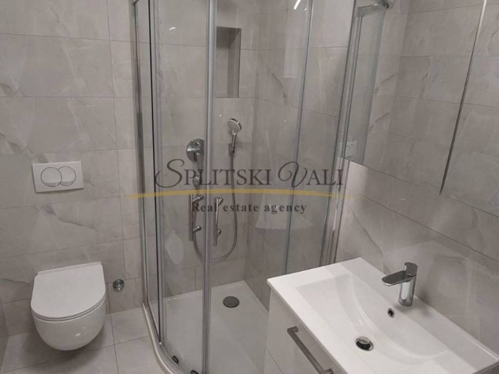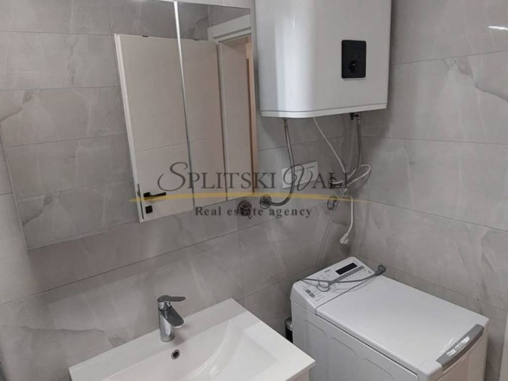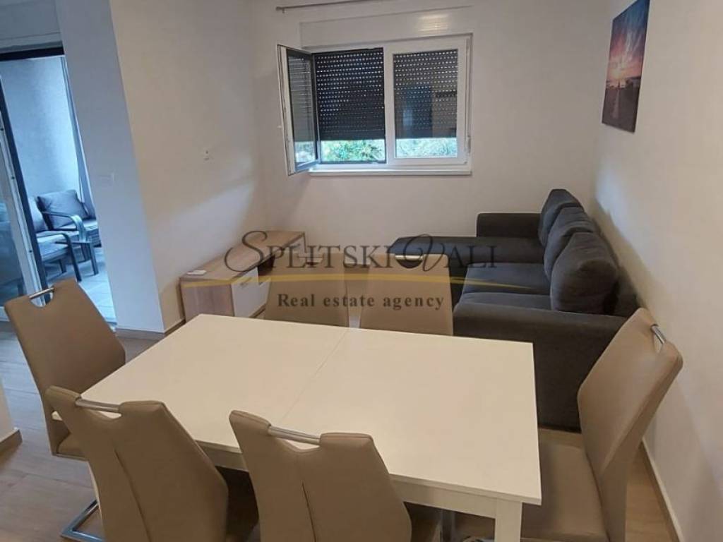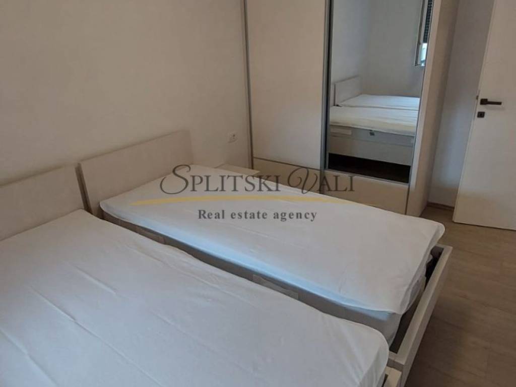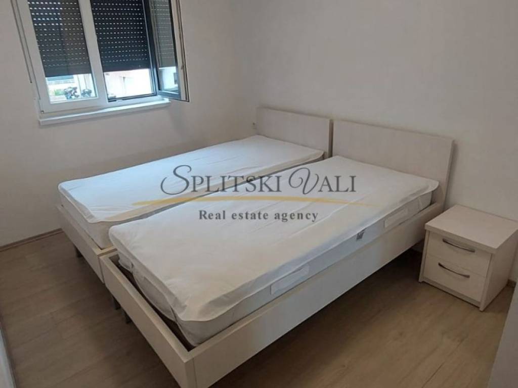 Iznajmljuje se potpuno namješten dvosobni stan od 57 m, smješten na prvom katu stambene zgrade u mirnoj i tihoj ulici, svega 300 metara od centra Trogira. Stan se sastoji od dnevnog boravka s kuhinjom i blagovaonicom, dvije spavaće sobe, kupaonice i balkona zapadne orijentacije. Opremljen je podnim grijanjem, klimom, perilicom rublja i perilicom posuđa. U cijenu najma uključeno je i osigurano parkirno mjesto.
