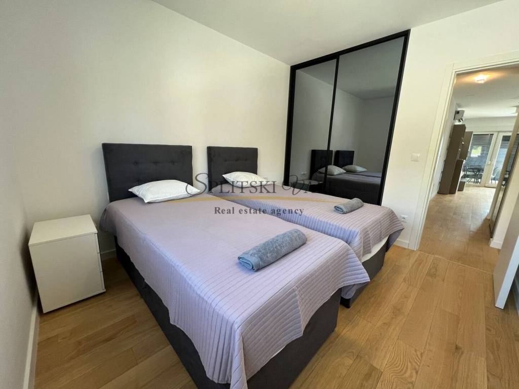 Posredujemo u najmu luksuzne nekretnine-dvosoban stan s garažnim mjestom dostupan do 1.6.2026. Stan se nalazi na ekskluzivnoj lokaciji-nekoliko minuta šetnje udaljen od plaže Žnjan, trgovine te ostalih potrebnih sadržaja. Sastoji se od predsoblja, potpuno opremljene kuhinje s blagovaonicom, dnevne sobe, dvije spavaće sobe, kupaonice s perilicom za rublje te čak dva balkona s kojeg se pruža predivan otvoren pogled na more. Stan je opremljen svim potrebnim uređajima i namještajem vrhunske kvalitete. Nalazi se na prvom katu novije stambene zgrade s liftom te mu pripada garažno mjesto s punionicom za električna vozila. Za sve dodatne informacije molimo da nam se javite na broj +385991600400 (Josipa). Najmoprimac plaća posredničku naknadu i polog u iznosu jedne najamnine. Razgled nekretnine moguć je isključivo uz potpisani Ugovor o posredovanju, a što je u skladu sa Zakonom o zaštiti podataka i Zakonom o posredovanju i prometu nekretninama.