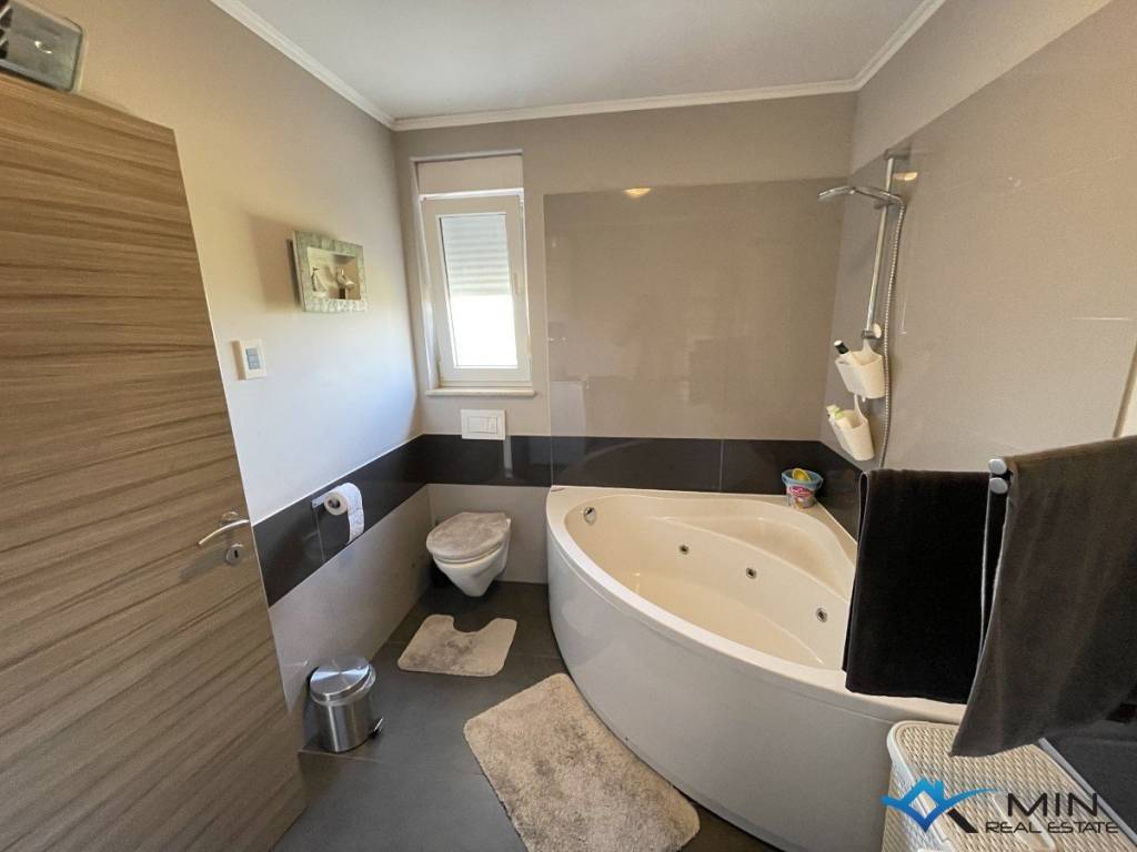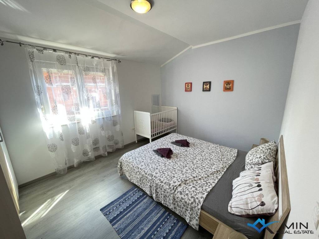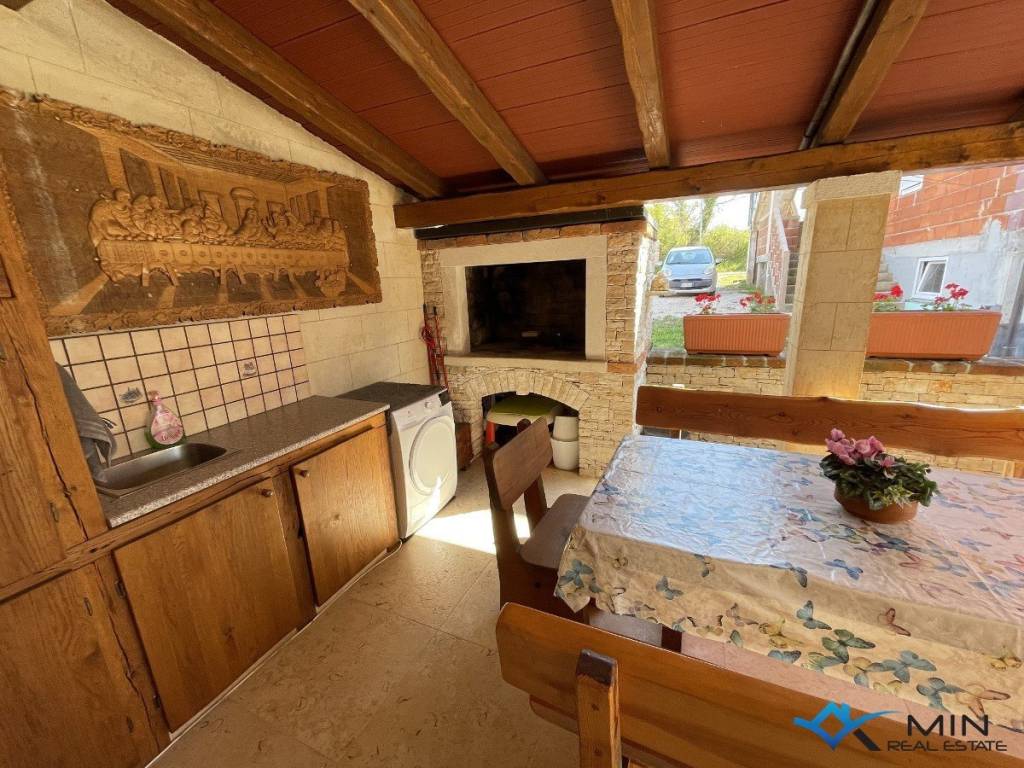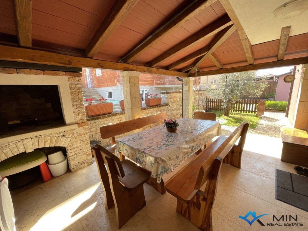 Charmantes Haus zum Verkauf in ruhiger Lage in der Nähe von Umag. Das Haus hat insgesamt 152 m2 und ist in 2 Wohnungen aufgeteilt. Die Wohnung im Erdgeschoss ist 73 m2 groß und besteht aus einer Eingangshalle, einem Badezimmer, 2 Schlafzimmern, einer Küche mit Essbereich und einem Wohnzimmer mit Zugang zu einer überdachten Terrasse mit Kamin und einer Sommerküche von 20 m2. Die überdachte Terrasse kann verglast werden und erhält so einen Wintergarten. Die Wohnung im 2. Stock hat 79 m2 und besteht aus einer Eingangshalle, 2 Schlafzimmern, einer Küche mit Esszimmer und einem Wohnzimmer mit Ausgang zur Terrasse. Das Haus verfügt über einen Gemeinschaftspool und einen wunderschön angelegten Garten von 398 m2. Das Haus verfügt über einen großen überdachten Parkplatz für 4 Autos + eine Garage von 38 m2, die legalisiert ist und Platz für 2 Autos bietet. Das Haus kann für Wohn- oder Touristenzwecke genutzt werden. Die Entfernung zum Meer und zu den schönen Stränden beträgt 3 km, und das Stadtzentrum erreichen Sie nach 4 km. Das Haus ist gut gemacht und erfordert keine zusätzlichen Investitionen. Die Gesamtfläche des Hauses mit Garage und überdachter Terrasse beträgt 210 m2.