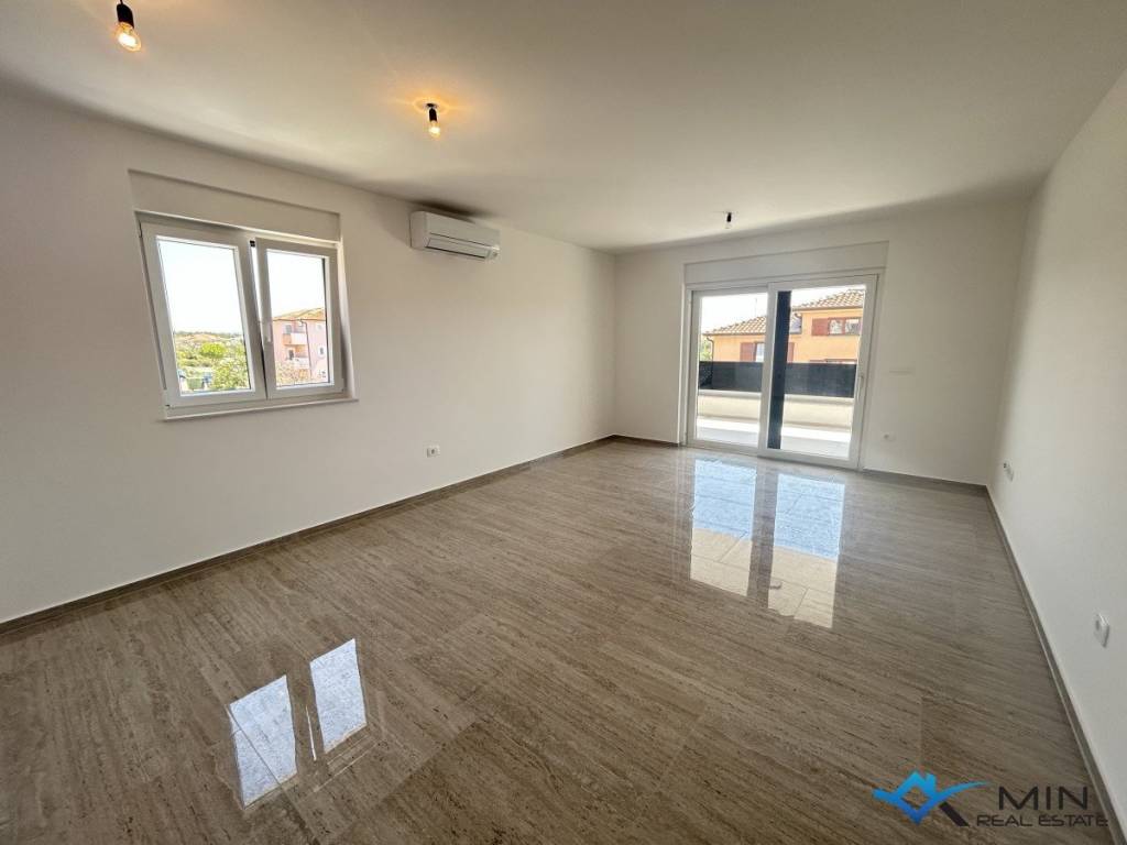 Zum Verkauf steht eine im Bau befindliche Wohnung im 1. Stock eines Wohnhauses mit insgesamt 8 Wohnungen. Die Wohnung ist 78 m2 groß und besteht aus einem Flur, einer Toilette, 2 Badezimmern, 2 Schlafzimmern und einem offenen Raum, in dem sich eine Küche mit Esszimmer und ein Wohnzimmer mit Zugang zu einer Terrasse mit wunderschönem Blick auf das Meer befinden. Die Heizung und Kühlung der Wohnung erfolgt über eine Fußbodenheizung im Badezimmer, eine Klimaanlage und einen Kamin, sodass die Möglichkeit besteht, einen Kamin oder Pelletofen zu installieren. Die Wohnung kann zu Wohn- oder Touristenzwecken genutzt werden. Die Entfernung zum Meer und zum wunderschön dekorierten Strand beträgt 800 m und das Zentrum von Novigrad ist 1000 m entfernt.