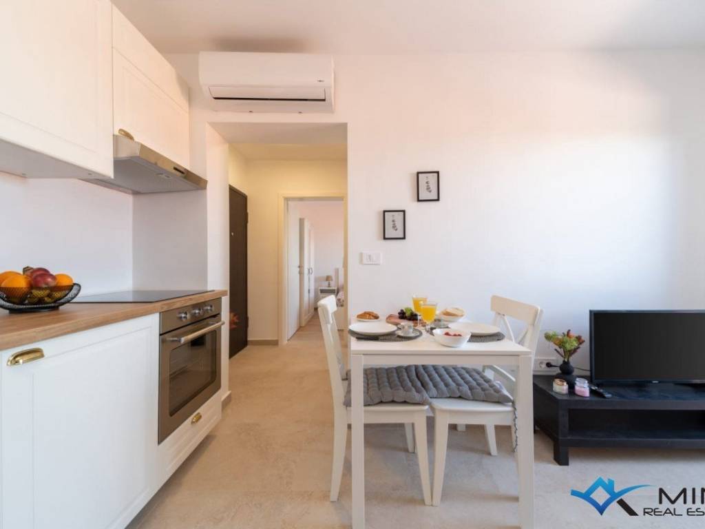 Zum Verkauf steht eine schöne Wohnung in der Nähe des Strandes und des Meeres (400 m) im 2. Stock des Gebäudes. Die Wohnung ist 41 m2 groß und besteht aus Flur, Badezimmer, Schlafzimmer, Küche mit Esszimmer und Wohnzimmer mit Zugang zu einer Terrasse mit wunderschönem Meerblick. Die Heizung und Kühlung der Wohnung erfolgt über eine Klimaanlage. Zur Wohnung gehört ein Abstellraum im Erdgeschoss des Gebäudes. Die Wohnung wird komplett möbliert und ausgestattet verkauft.