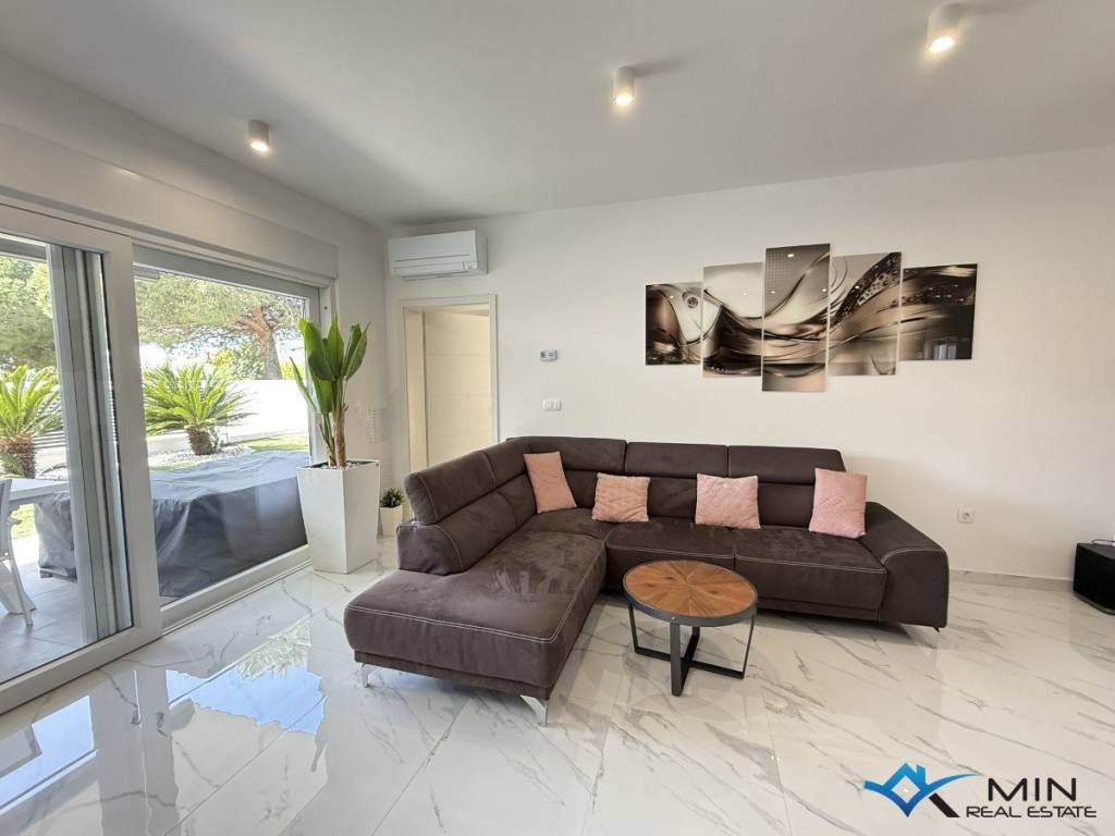 Zum Verkauf steht eine moderne Wohnung in der Nähe aller Annehmlichkeiten in Novigrad und nur wenige Gehminuten vom Stadtzentrum und dem wunderschön angelegten Strand entfernt. Die Wohnung befindet sich im Erdgeschoss eines Gebäudes mit insgesamt 4 Wohnungen und verfügt über einen eigenen Eingang. Die Wohnung hat 78 m2 und besteht aus einem Flur, einem Badezimmer, 2 Schlafzimmern mit Ausgang zum Garten und einem offenen Bereich mit einer Küche/einem Esszimmer und einem Wohnzimmer mit Ausgang zum Garten. Zur Wohnung gehört ein 204 m2 großer Garten, der sehr schön angelegt ist und über eine Sommerküche mit Grill, eine Außendusche, Abstellraum und einen Raum unter der Treppe verfügt, der als Toilette + Abstellraum genutzt wird. Zur Wohnung gehört 1 Parkplatz, neben dem Gebäude gibt es weitere Parkplätze, auf denen ebenfalls geparkt werden kann.