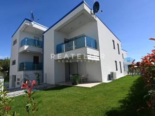 Wohnung im Bau befindlich, gelegen in einem kleinen Gebäude mit vier Wohneinheiten in der Siedlung Lovrečica (Teil eines Projekts bestehend aus insgesamt 6 Gebäuden mit der gleichen Anzahl von Einheiten). Die Unterkunft befindet sich nur 300 Meter vom Meer und dem organisierten Strand entfernt, in einer ausgezeichneten Lage, nur wenige Autominuten von Umag und Novigrad entfernt. Klimaanlagen sind für Heizung und Kühlung in allen Wohnungen vorgesehen. Angesichts der Spezifität und Nachfrage der Mikro-Lage hat die Wohnung großes Potenzial für touristische Vermietung.