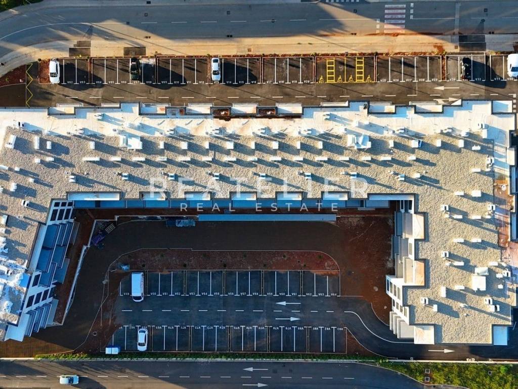 Hervorragendes modernes Wohnprojekt mit 122 Wohneinheiten in der Stadt Umag in der Nähe zahlreicher kommerzieller und sozialer Einrichtungen. Besonders hervorzuheben ist die Nähe zu Schulen, verschiedenen Geschäften und einem zeitgemäßen Multifunktionssportplatz, der nur hundert Meter vom Gebäude entfernt liegt. Die gesamte Gebäudestruktur ist aus Stahlbeton konstruiert. In den Wohnungen sind die Trennwände aus doppelt dicken Gipskartonplatten gefertigt, um zusätzliche Wärme- und Schalldämmung zu gewährleisten. Die Fassadenverkleidung mit 10 cm Wärmedämmung sorgt für eine ausgezeichnete Energieeffizienz. Die Außenöffnungen sind mit hochwertigen PVC-Profilen ausgestattet (elektrische Rollläden in den Schlafzimmern). Für die Bodenbeläge werden ausschließlich hochwertige Keramik in großem Format und erstklassiges Parkett verwendet. Jede Wohnung ist mit einer hochwertigen Multisplit-Heiz- und Kühlanlage ausgestattet und verfügt über einen eigenen Wasser- und Stromzähler. Alle Wohnungen sind mit Telefon-, Antennen-, TV- und Internetanschlüssen ausgestattet, wobei eine Gegensprechanlage mit Video-Gegensprechanlage für jede Einheit installiert ist. Erdgeschosswohnungen verfügen über zusätzlichen Außenbereich, während jede Einheit im Projekt über 1 oder 2 Parkplätze (überdachter Parkplatz oder Garage) verfügt. Die voraussichtliche Fertigstellung des Baus ist für 6/2025 geplant.