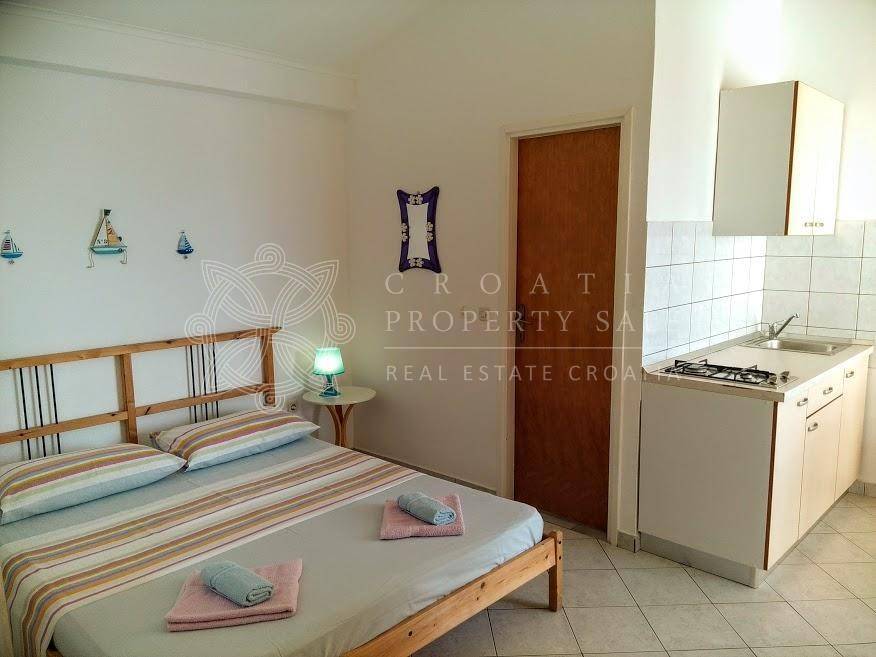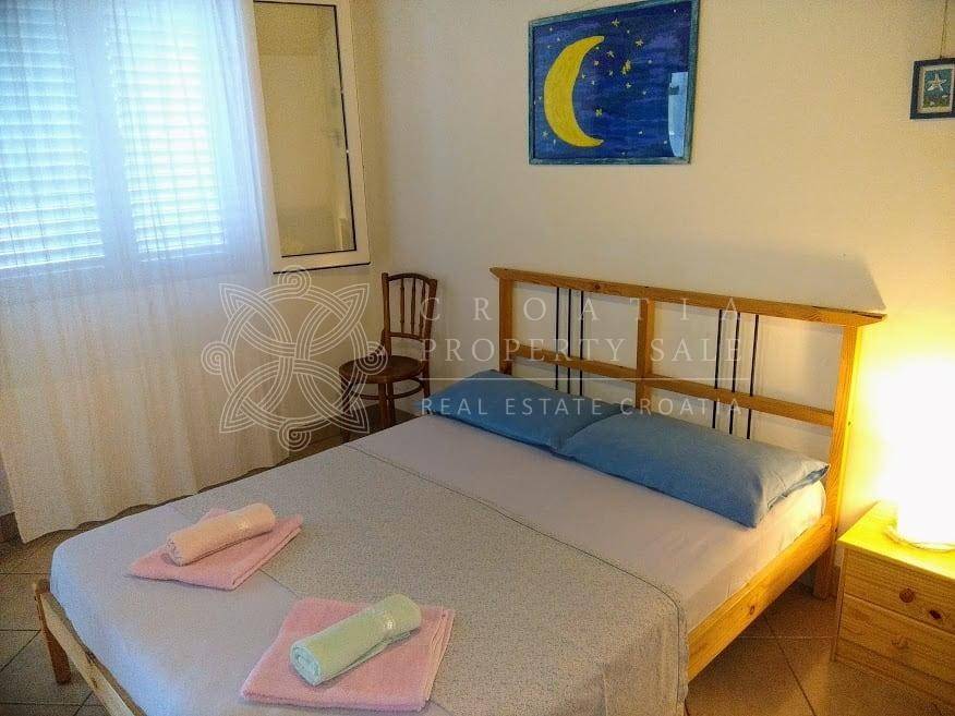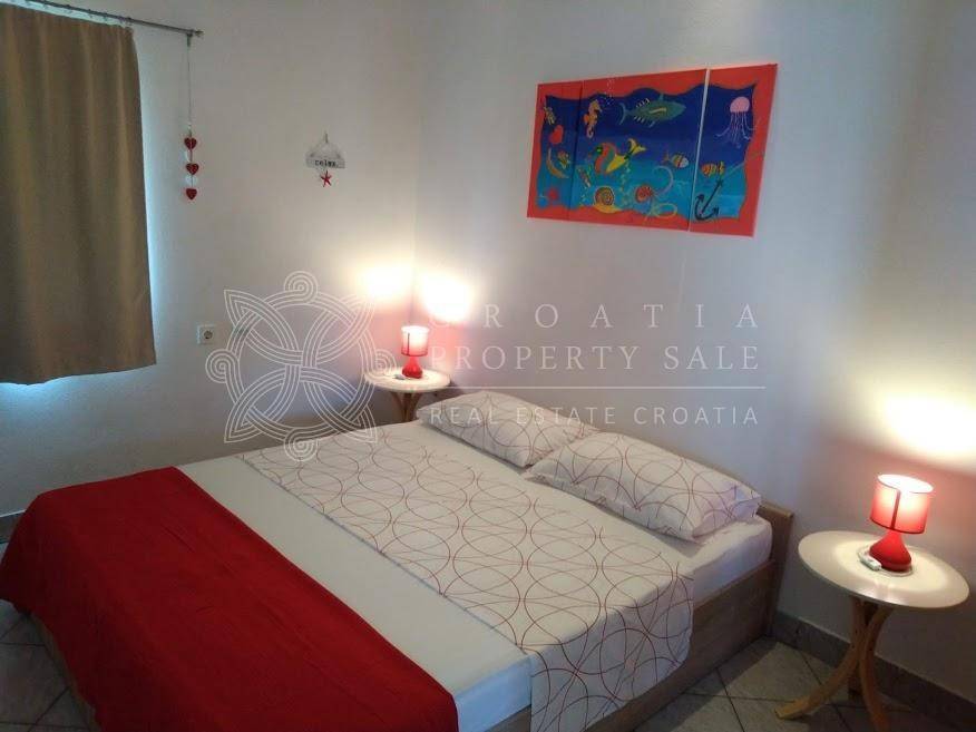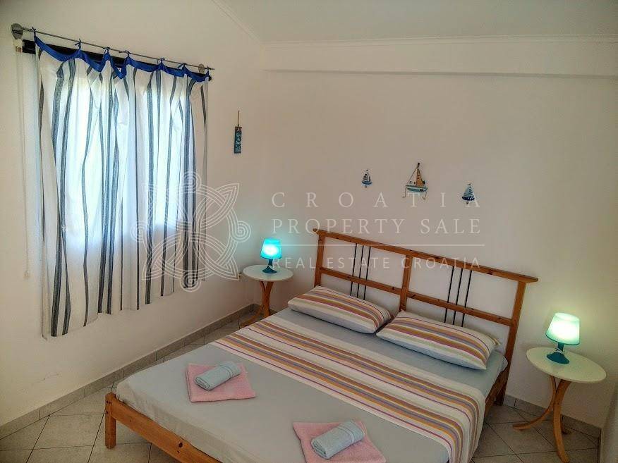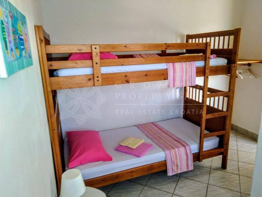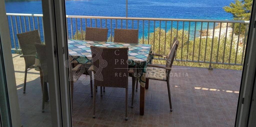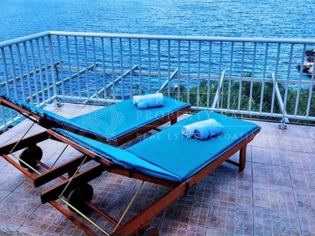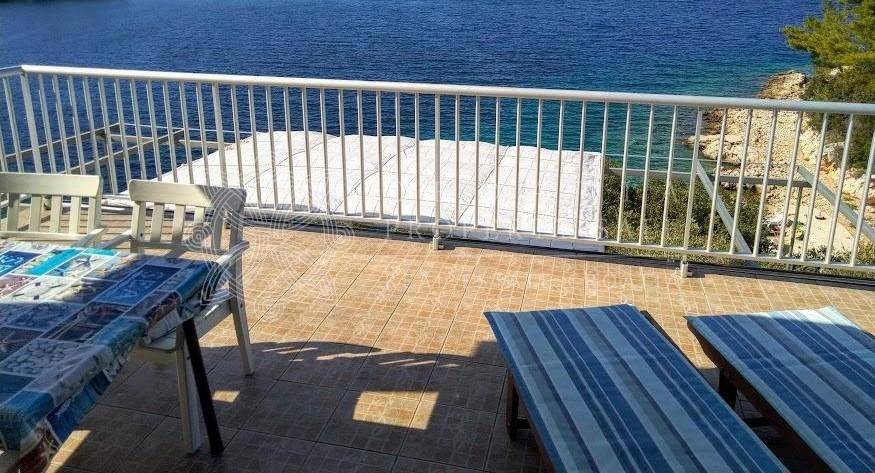 This Croatia Korcula island waterfront house for sale with boat mooring is located just 10 meters from the beach and boat jetty. Surrounded by lush nature, including olive trees, lemons, and other Mediterranean plants, the property offers a serene and private setting. Private parking is conveniently located about 30 meters above the house, and from the garden, stairs lead down to a pebble beach that is perfect for children. With only a few houses in the area, the beach feels almost private.The house spans two floors and features three apartments, with a total of six rooms, three bathrooms, and three kitchens. The living space covers approximately 200 square meters, and the land plot is 550 square meters. Large terraces offer panoramic sea views and can comfortably accommodate 10-15 people for meals. There is also an additional large terrace surrounded by greenery on the side of the house. The interiors can easily be reorganized into larger units on each floor.In the garden, there is ample space to install an infinity pool, which would provide spectacular sea views. This property is in an exceptional location for those seeking total privacy while being surrounded by nature and greenery. The nearest village is just 2 kilometers away. Price for Croatia Korcula island waterfront house for sale with boat mooring is 1 200 000 EUR.