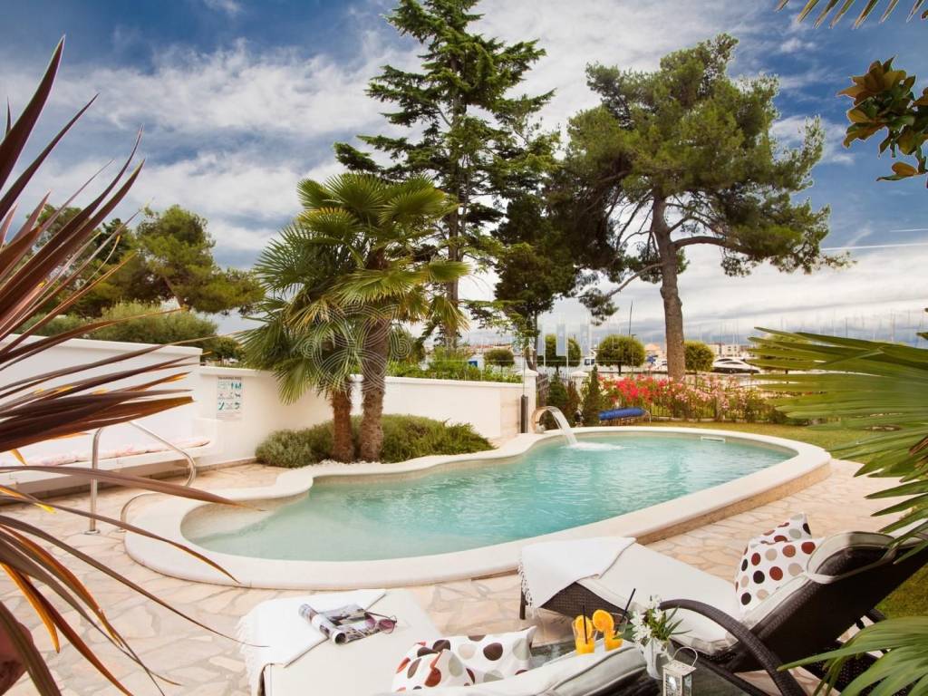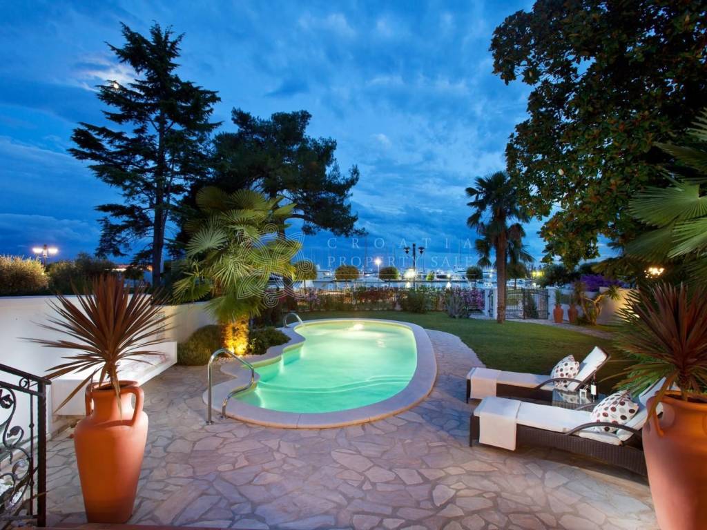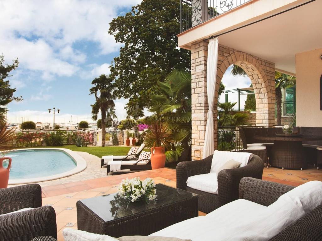 The well-maintained villa showcases traditional Istrian architecture and is set within a lush garden, complete with a pool and shaded terraces surrounded by palm trees. Its prestigious location offers breathtaking sea views and is just a short walk from all the amenities of the charming, historic town of Umag. This villa is a perfect choice for yacht owners, as the nearby marina provides convenient mooring options.