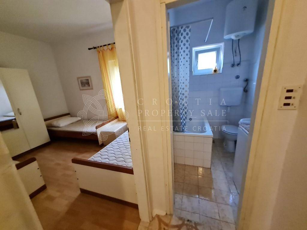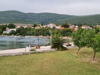 The house has an area of about 200 m2, facing west, it is organized as 2 apartments, one on the ground floor and the other on the first floor. Each apartment has 2 bedrooms and a bathroom, as well as a kitchen with a dining room and a living room that opens onto a spacious terrace where you can enjoy lunches and especially dinners with the beautiful colors of the sky at sunset. The apartment on the first floor has been beautifully and modernly renovated, while the apartment on the ground floor should be modernized.
