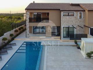 Haus A mit einer Fläche von 178 m besteht aus einem Erdgeschoss und einem ersten Stock. Das Erdgeschoss verfügt über einen Eingangsflur, eine moderne Küche mit Essbereich, ein geräumiges Wohnzimmer, eine Gästetoilette, ein Schlafzimmer mit eigenem Bad und einen Abstellraum. Im ersten Stock, der über eine elegante Treppe erreichbar ist, befinden sich drei Schlafzimmer, jedes mit eigenem Bad.