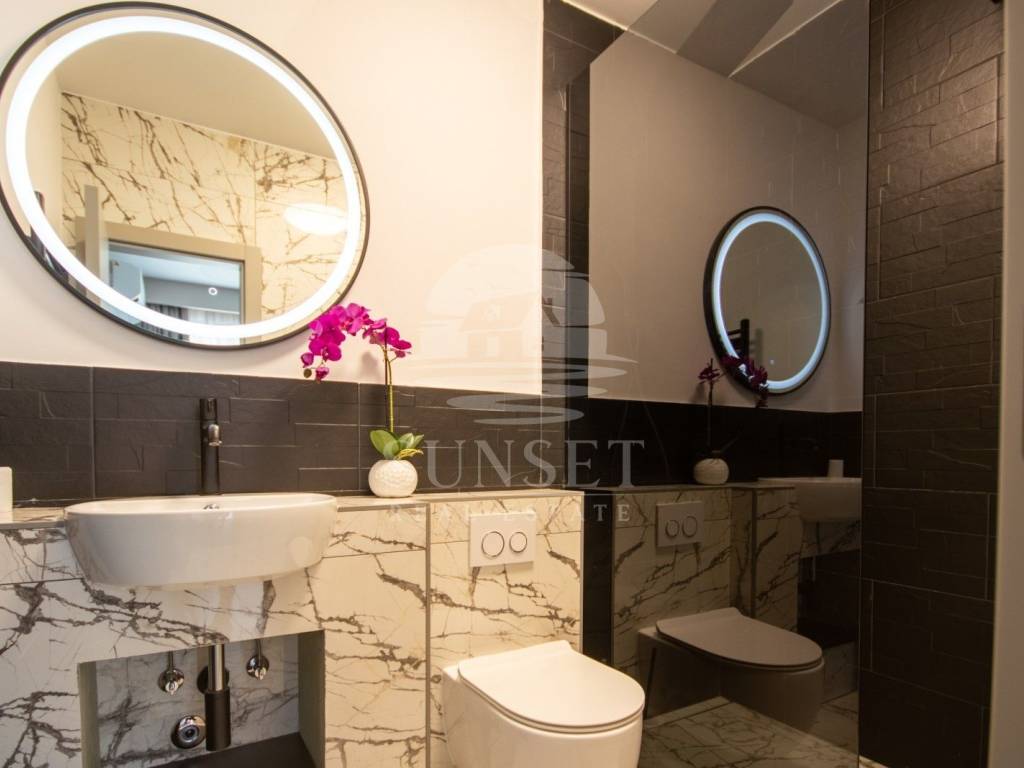 Wir verkaufen ein luxuriös ausgestattetes Duplex in einer prestigeträchtigen Lage, in unmittelbarer Nähe zu allen notwendigen Annehmlichkeiten. Die Duplex-Villa mit einem 432 m großen Garten besteht aus zwei Einheiten, die vollständig mit hochwertigen maßgefertigten Möbeln ausgestattet sind.