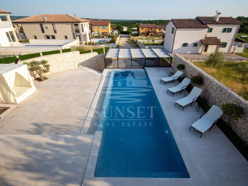 Im wunderschön gestalteten Garten befinden sich ein Pool mit Liegefläche, ein Jacuzzi und ein überdachter Parkplatz, wodurch diese Immobilie perfekt für Entspannung und Genuss geeignet ist.