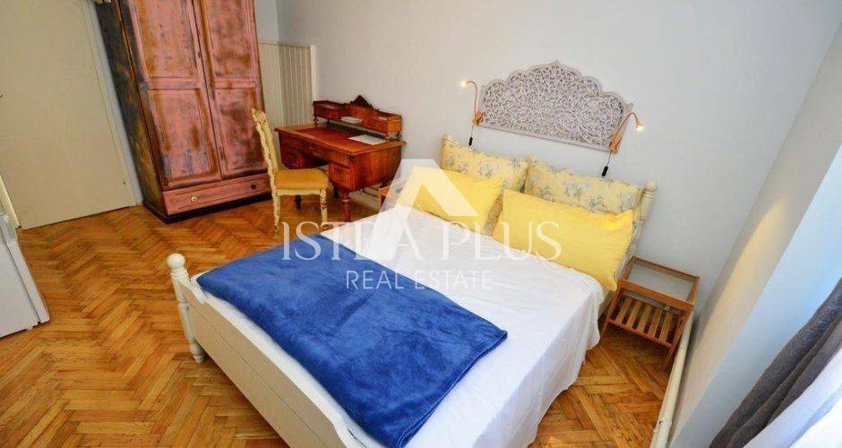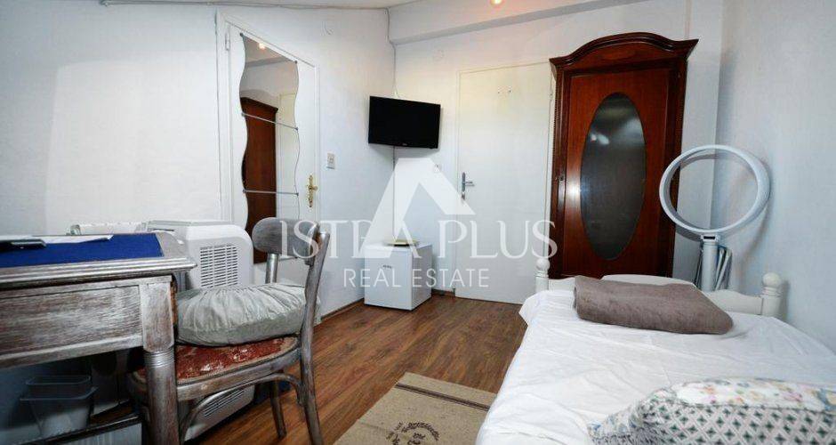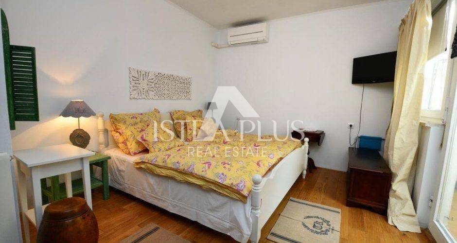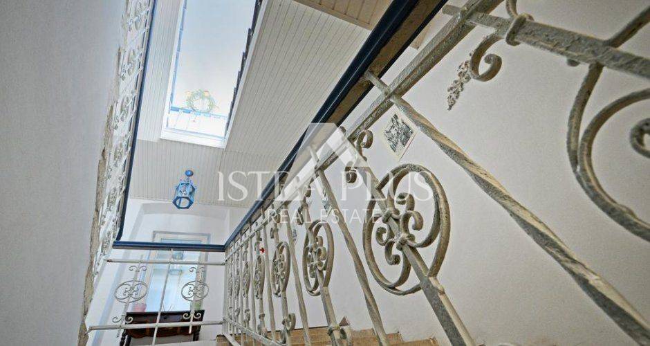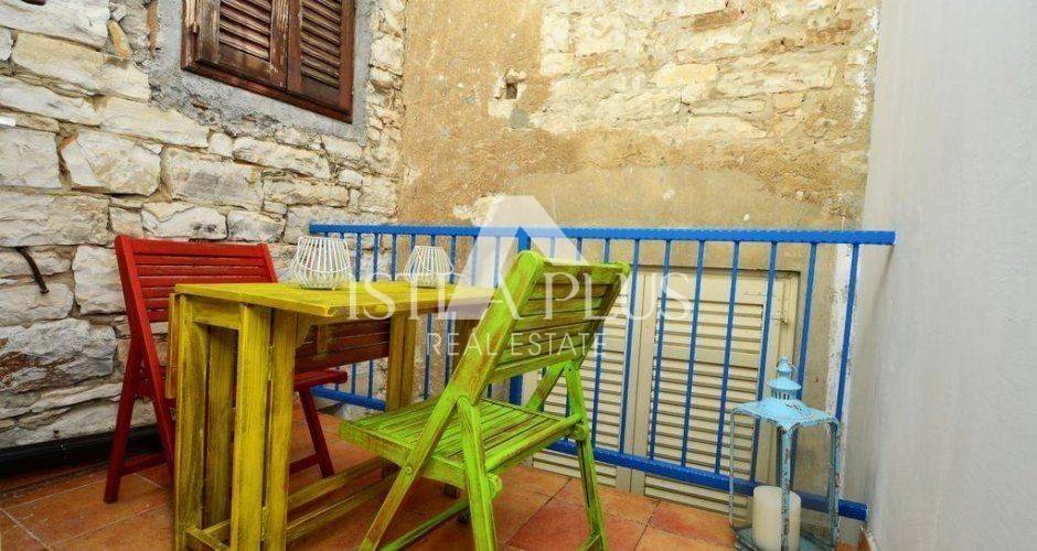 Die Steintreppe führt in den ersten Stock, wo sich zwei Wohnungen mit einem Schlafzimmer, einer Küche und einem Badezimmer befinden. Eine Wohnung hat einen Balkon.