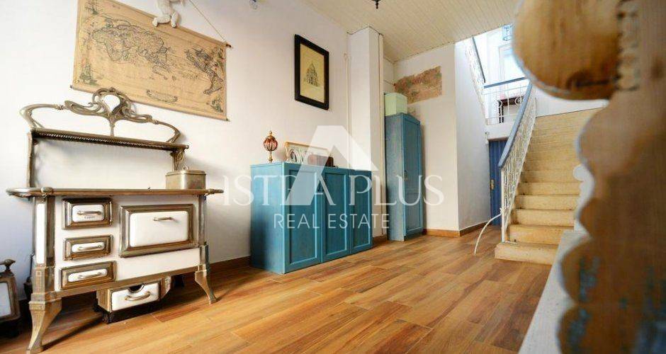 Das Erdgeschoss des Hauses verfügt über eine geräumige Eingangshalle, die mit antiken Details und Möbeln eingerichtet ist.