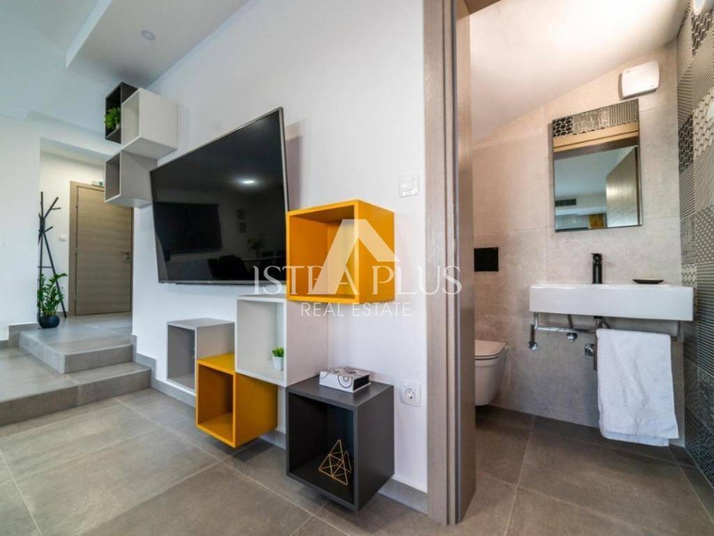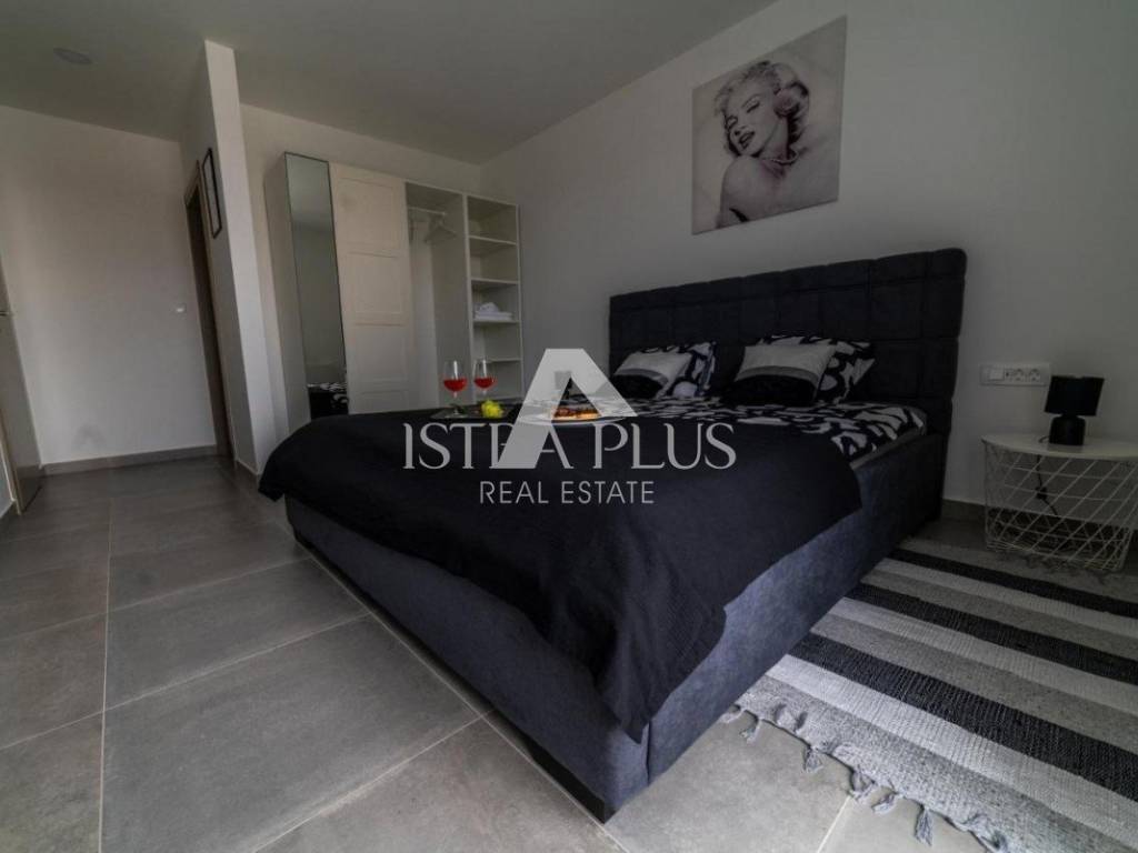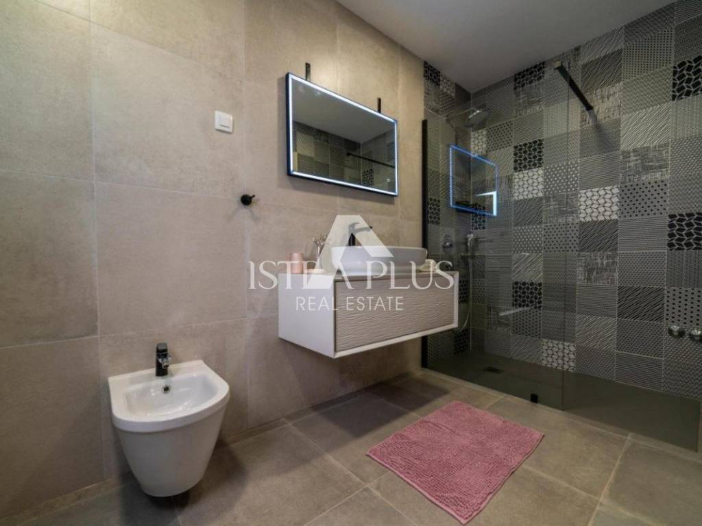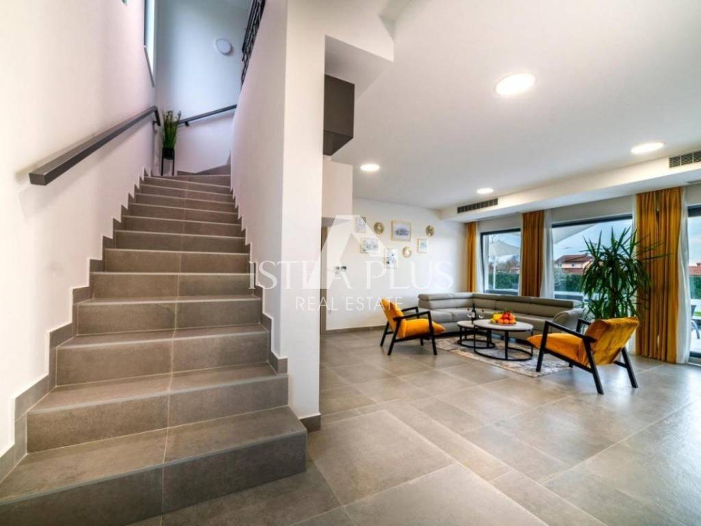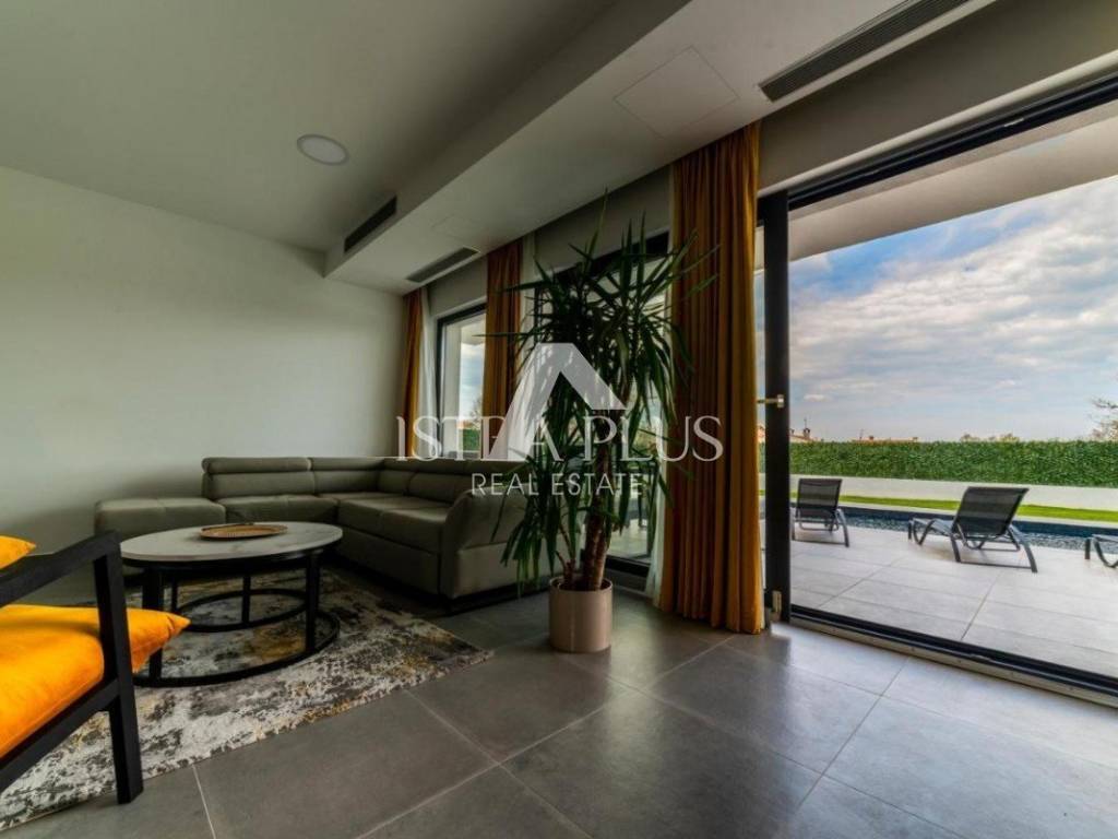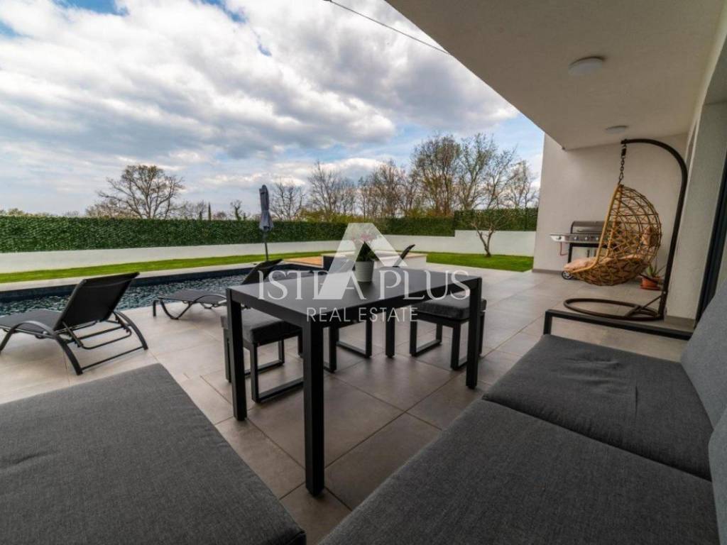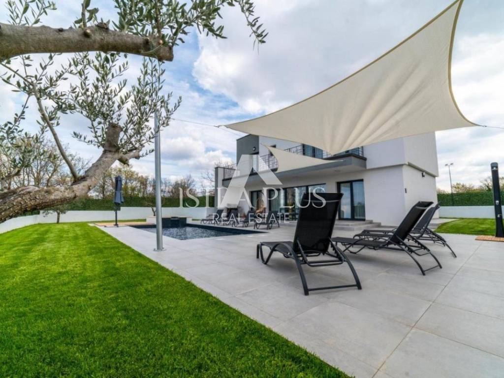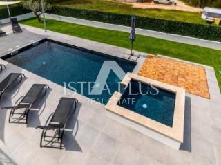 K35 Ein neu gebautes Haus zum Verkauf, 6 km vom Zentrum von Poreč und dem Strand entfernt. Diese neu erbaute Villa mit 204 m2 Nutzfläche befindet sich auf einem Grundstück von 592 m2. Das Haus hat eine Fläche von 204 m2 und erstreckt sich über zwei Etagen. Im Erdgeschoss gibt es eine Küche mit Esszimmer, ein Wohnzimmer mit Zugang zum Hof, eine Toilette mit Abstellraum und ein Schlafzimmer mit eigenem Bad. Im ersten Stock befinden sich 3 Schlafzimmer, die auch über ein eigenes Badezimmer und Zugang zu einer gemeinsamen Terrasse mit schöner freier Aussicht verfügen. Im gesamten Haus gibt es eine Fußbodenheizung und in jedem Zimmer gibt es Ventilatorkonvektoren für zusätzliche Heizung und Kühlung. Im Hof gibt es einen Swimmingpool von 37 m2, der auch mit einem Whirlpool von 11 m2 verbunden ist.