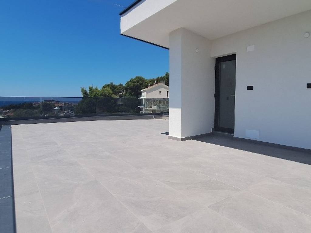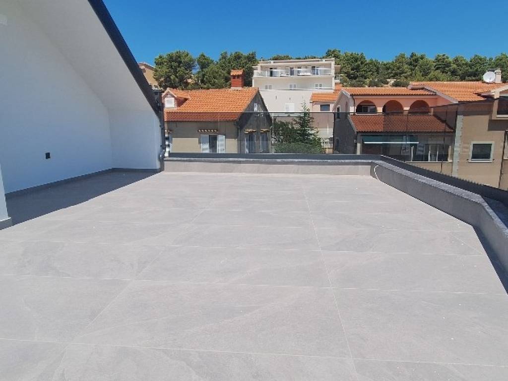 PRIMOŠTEN Luxury penthouse in a modern new building with a spacious rooftop terrace and panoramic sea view only 400 m from the sea and 700 m from the center!