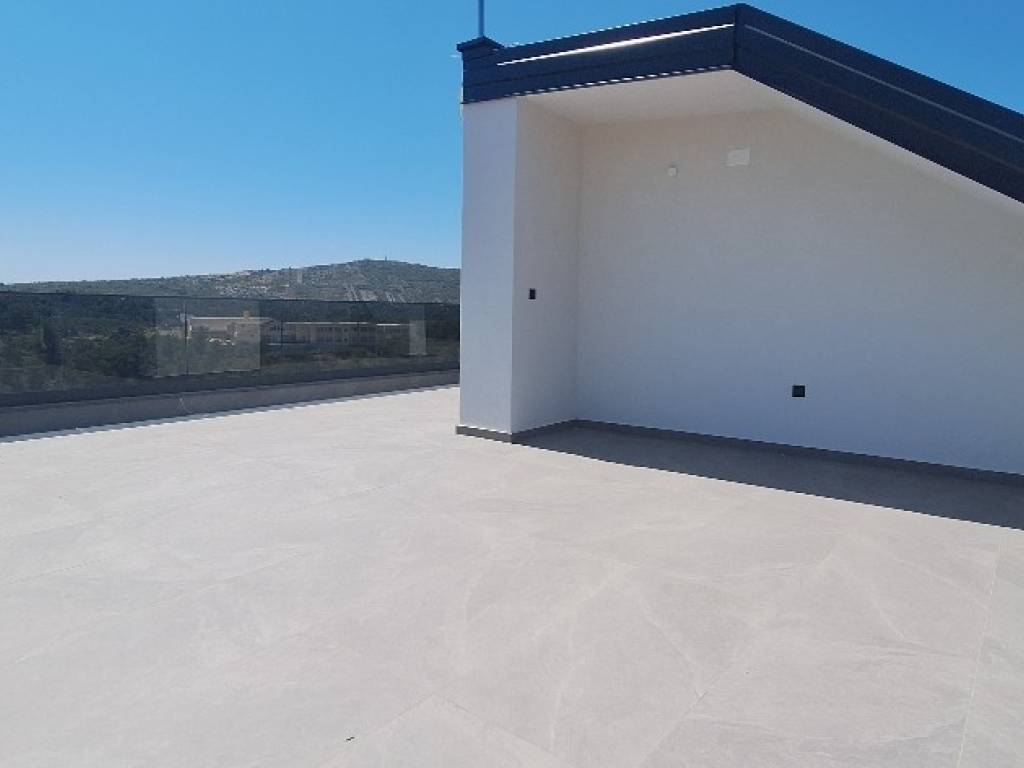 In a quiet part of Primošten, in a high-quality, modern residential building, this spacious penthouse is located on the first floor and includes an internal staircase leading to a large private rooftop terrace, with a total net usable area of 207.39 m.