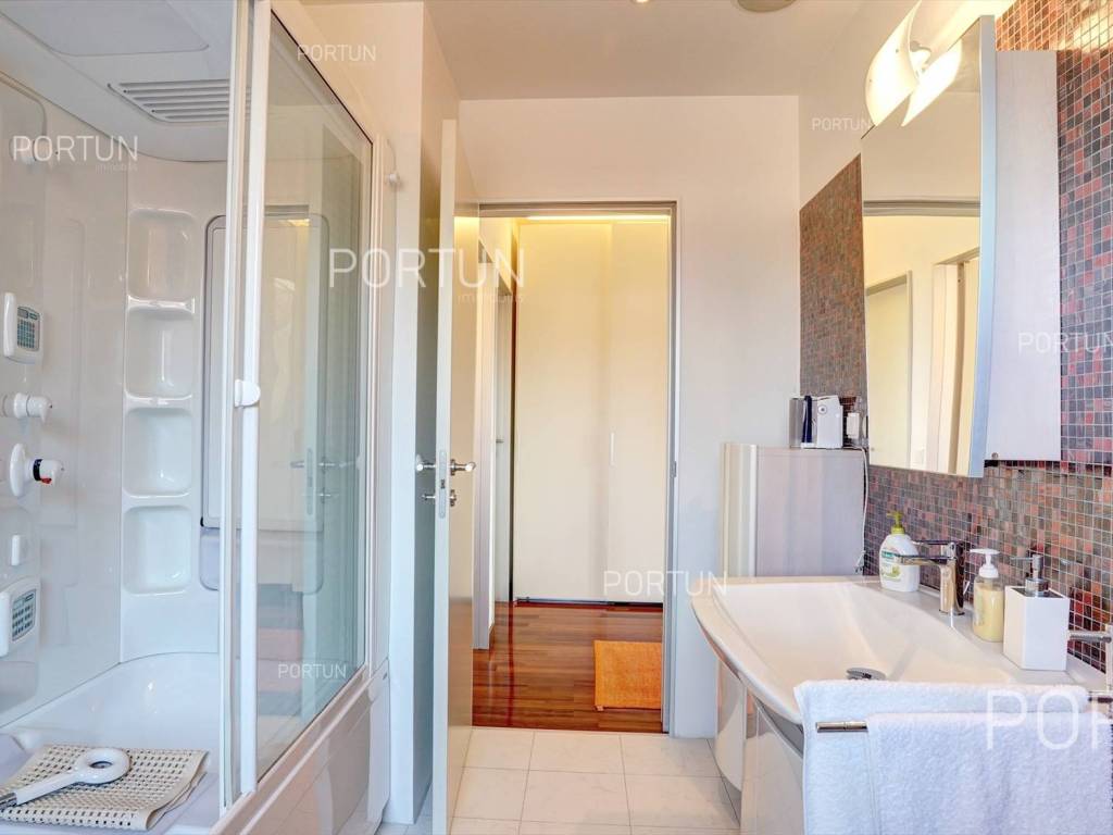 Die geräumige und helle Wohnung befindet sich im zweiten Stock eines kleineren Gebäudes in Rovinj, etwa 10 Gehminuten vom Stadtzentrum entfernt, und ist mit einem Abstellraum und einem gekennzeichneten Parkplatz ausgestattet.Die Wohnung besteht aus einem luftigen, neutral eingerichteten Wohnzimmer mit Küche und Esszimmer, zwei Schlafzimmern, einer Toilette, einem Abstellraum für Besen und sogar drei Terrassen.Die Wohnung eignet sich hervorragend für alle, die eine große, gut ausgestattete Wohnung in verkehrsgünstiger Lage in Rovinj suchen. Willst du es besuchen? Sprechen Sie uns an, wir zeigen es Ihnen gerne.LageIn Istrien können Sie auf atemberaubende Natur, prähistorische Strukturen und antike und mittelalterliche Städte stoßen, die fast jeden Hügel mit charakteristischen Straßen, einem Platz, einer Kirche und einem Stadthaus erobert haben. Rovinj, bekannt als die Perle der Halbinsel Istrien, ist der Champion des kroatischen Tourismus, voller Leben im Sommer und Ruhe im Winter, gefärbt von den magischen Farben des Sonnenuntergangs und der charmanten Altstadt, die mit venezianischer Architektur bereichert ist. Die Ausgezeichnete Wohngegend in der Nähe des Zentrums von Rovinj, wo sich die Wohnung befindet, ist reich an interessanten Dingen und verschiedenen Inhalten:Meer Strand Porton Biondi 1,5 km Dienstleistungen Geschäft 200 m Café oder Bar 200 m Gasthaus oder Restaurant 200 m Grundschule 850 m Kindergarten 700 m Krankenhaus 750 m Apotheke 750 m Marina 1,4 km Sport und Unterhaltung Fußballplatz 1000 m Handballplatz 850 m Basketballplatz 1,7 km Der Waldpark Punta Corrente 2 km Städte in der Nähe Bale 14 km Kanfanar 16 km Pula 40 km Verkehr Autobahneinfahrt Kanfanar 14 km Flughafen Pula 39 km Sehenswürdigkeiten Die verlassene mittelalterliche Ruinenstadt Dvigrad 19 km Das besondere ornithologische Reservat Palud 9 km AufteilungInterne Steintreppe führt zum Eingang der Wohnung auf der Ebene des 2. Stocks. Die Dreizimmerwohnung mit offenem Grundriss von 102 qm besteht aus einem Wohnzimmer mit Küche und einem Esszimmer, zwei Schlafzimmern, drei Terrassen, einem Badezimmer, einer Toilette, einer Waschküche und einem Abstellraum. Die zwei Schlüsselräume in dieser Wohnung sind das Wohnzimmer mit Küche und Esszimmer und das Hauptschlafzimmer, deren Hauptmerkmale sind: Das Wohnzimmer mit Küche und Esszimmer 2. Stock Nordwestliche Ausrichtung Meerblick Ausgang zur Terrasse Geräumiges Wohnzimmer Eine hervorragende Orientierung sorgt für viel natürliches Licht Dreisitzer-Sofa Zweisitzer-Sofa Kaffeetisch TV L-Form Küche Ausgestattet mit Haushaltsgeräten Theke mit Barhockern Tisch 6 StühleDas Hauptschlafzimmer 2. Stock Nordwestliche Ausrichtung Ausgang zur Terrasse Kleiderschrank DoppelbettAusstattung Parkplatz für ein Auto 11,50 m2 Abstellraum 11,50 m2Eigenschaften des GebäudesDie Wohnung befindet sich in einem Mehrfamilienhaus, das sich Keller, Erdgeschoss, zwei Obergeschosse und Dachboden erstreckt. Der Eingang zum Gebäude erfolgt auf der Ebene des Erdgeschosses, von der Nordseite, und die vertikale Kommunikation erfolgt über eine interne Treppe. Die grundlegenden architektonischen Merkmale dieses gepflegten Mehrfamilienhauses sind: 14 Wohnungen 13 Parkplätze Außenwände Wände aus Blockziegel Decken aus Stahlbeton Dach Schrägdach E. AUSWEIS In Abfassung Gebaut 2003Möbel und AusrüstungMöbel Fast alle Möbel sind im Preis inbegriffenAusrüstung Parlaphon Beleuchtung Sanitäreinrichtungen BadezimmermöbelSchreinerei/Fenster Tischlerei aus PVC mit Doppelverglasung Kunststoffensterläden Aluminium Jalousien Einbruchhemmende Eingangstür Innentüren aus HolzMultimedia TV SoundsystemHeizung und Kühlung Klimaanlagen Mitsubishi (4) Heizkörper (Strom) Elektrischer WarmwasserspeicherBodenbelagParkett Listone Giordano Wohnzimmer mit Küche und Esszimmer SchlafzimmerHochwertige Keramikfliesen Bisazza Andere RäumeInfrastruktur Anschluss an das Stromnetz mit eigenem Zähler Eigener Anschluss an das Wasserversorgungsnetz Anschluss an die Kanalisation Asphaltierte Auffahrt (Öffentlich) Öffentliche BeleuchtungDokumentationErhaltene Dokumentation Baugenehmigung Nutzungserlaubnis ProjektFlächenberechnungIn der Oberfläche der Wohnung (102,00 m2) umfasst die Bereiche dieser Räume:Wohnraum = 102,00 m2Datenquelle = Projekt