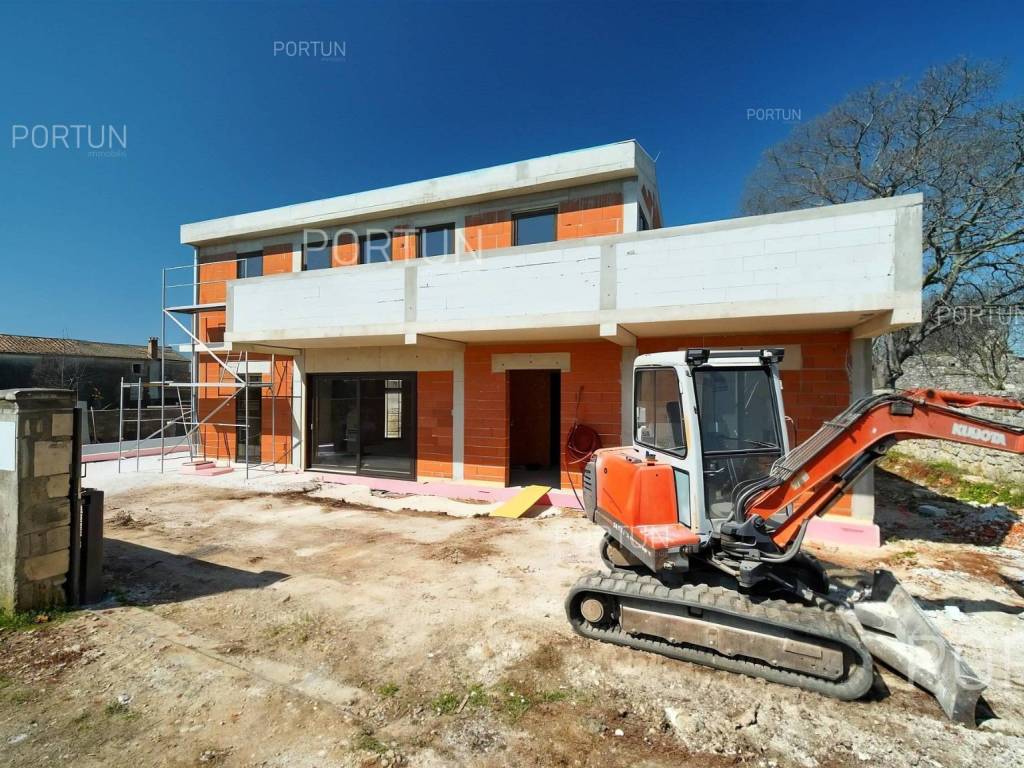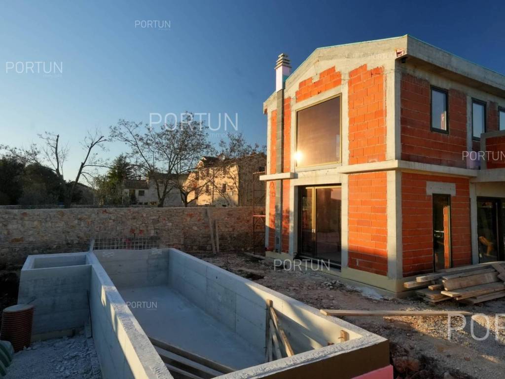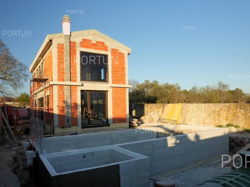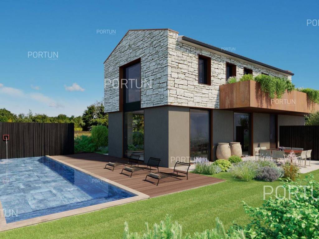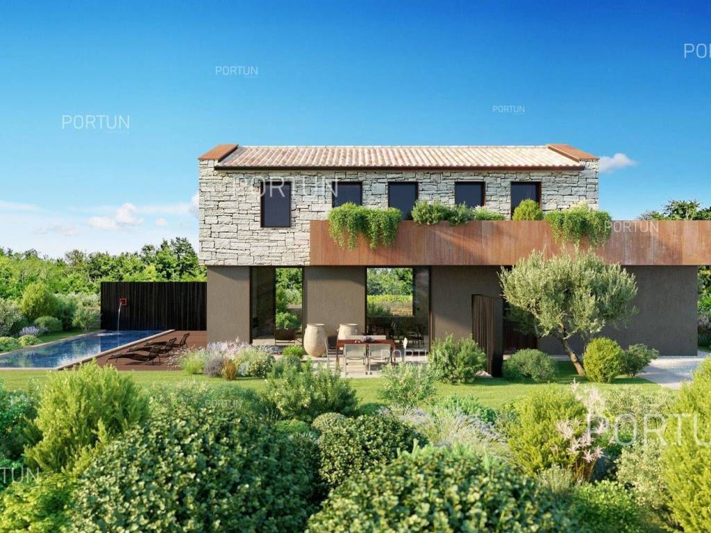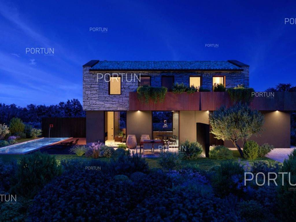 Das kreativ gestalteite Familienhaus ähnelt im Aussehen einem tradicionalellen istrischen Haus, bietet jedoch frische Designlösungen und ein minimalistisches Interieur.Einfach gestaltete Haus mit einem üppig grünen Garten fugt sich discret in ein ruhiges Dorf unweit von Bale ein und es gibt zährliche ammenheits in der Nähe, die Ihren Aufenthalt in diesem Haus unvergesslich machen werden.Das Haus zeichnet sich durch eine harmonische Kombination aus Stein, Corten und großen Glasflächen aus, die für den hellen Innenraum verwarttung sind. Der zeitgenössische Ausdruck setts sich auch im Innenraum fort durch die Verwendung neutraler Farben der Böden und Wände liegt der Schwerpunkt auf high-quality Holzmöbeln, die dem Haus eine besons angeheme, natürliche Note verleihen. Im Sommer können sich die Mitbewohner im Pool abkühlen und zur Entspannung gibt es im Erdgeschoss eine moderne finnische Sauna.Das Interesse an modern gestalteten Immobilien in Istrien ist groß, daher melden Sie sich so schnell wie möglich, da der Bau dieses einzigartigen Hauses begonnen hat!LageIn Istrien können Sie auf atemberaubende Natur, prähistorische Strukturen und antike und mittelalterliche Städte stoßen, die fast jeden Hügel mit charakteristischen Straßen, einem Platz, einer Kirche und einem Stadthaus erobert haben. Im westlichen Teil der Halbinsel Istrien liegt die kleine Stadt Bale - eine historische Steinstadt, die auf einem Hügel erbaut wurde, umgeben von endlosen Olivenhainen und Weinbergen, die nur fünf Kilometer vom Meer entfernt ist. Die idyllische ländliche Umgebung in der Gegend von Bale, wo sich dieses Haus befindet, bietet zahlreiche Vorteile:Meer Strand 14 km Dienstleistungen Geschäft 7 km Café oder Bar 7 km Gasthaus oder Restaurant 7 km Grundschule 7 km Kindergarten 7 km Apotheke 7 km Marina 20 km Sport und Unterhaltung Fußballplatz 8 km Mini-Fußballfeld 7 km Öffentliches Schwimmbad 22 km Der Wasserpark Aquacolors 29 km Der Naturpark Kamenjak 45 km Der Erlebnispark Glavani 18 km Städte in der Nähe Svetvinčenat 6 km Rovinj 20 km Verkehr Autobahneinfahrt Kanfanar 8 km Flughafen Pula 32 km Sehenswürdigkeiten Das geomorphologische Naturdenkmal Höhle Baredine 9 km Freilichtmuseum Kažun Park 16 km AufteilungDas Haus mit Pool mit modernem Grundriss von 176 qm, erstreckt sich über zwei Etagen nämlich über das Erdgeschoss und den 1. Stock. Erdgeschoss Der Eingang zum Haus befindet sich im Erdgeschoss. In diesem Stock, der Fläche von 79,11 m2, gibt es das Wohnzimmer mit Küche und Esszimmer 53,92 m2, die Toilette, ein Heizungsraum und eine Sauna. 1. Stock Interne Gerade Treppe führt ins Obergeschoss, also in den 1. Stock. Diese 96,81 m2 -Ebene verfügt über zwei Schlafzimmer mit Badezimmern und die Terrasse 32,44 m2. Die zwei Schlüsselräume in diesem Haus sind Das Wohnzimmer mit Küche und Esszimmer Erdgeschoss 53,92 m2 Südwestliche Ausrichtung Geräumiges Wohnzimmer Große Glaswände lassen viel Licht herein Ausgang zum Hof Ecksofagarnitur Küche in einer Linie Modernes Design Großer Tisch 6 StühleDas Schlafzimmer 1. Stock 25,10 m2 Südostausrichtung Blick in die Natur Ausgang zur Terrasse Modernes Design Badezimmer mit Dusche Doppelbett BeleuchtungAusstattung Parking für zwei AutosEigenschaften des HausesDer Eingang zum Haus erfolgt auf der Ebene des Erdgeschosses, von der Südostseite, und die vertikale Kommunikation erfolgt über eine interne Treppe. Die grundlegenden architektonischen Merkmale dieses modernen zweistöckigen Gebäudes sind: Etagen Erdgeschoss + 1. Stock Ausrichtung Südosten Außenwände Isolierung + Wände aus Blockziegel Decken aus Stahlbeton Dach Schrägdach E. AUSWEIS In Abfassung Geplanter Baubeginn 2023/12 Geplante Baufertigstellung 2024/12Möbel und AusrüstungMöbel Alle Möbel sind im Preis inbegriffenAusrüstung Video-Gegensprechanlage Alarmanlage für das Haus Videoüberwachung Smart-House-System Designer-Beleuchtung Designer Sanitärkeramik BadezimmermöbelSchreinerei/Fenster Tischlerei aus Aluminium mit Doppelverglasung Vorhänge Einbruchhemmende Eingangstür Innentüren aus HolzMultimedia TV in jedem Schlafzimmer SAT-TVHeizung und Kühlung Fußbodenheizung mit Wärmepumpe Kamin Kamin (Holz) Warmwasserspeicher SchornsteinAußenbereichAusrüstung LED-Außenbeleuchtung Automatische Bewässerung TröpfchenbewässerungZäune SteinmauerEinfahrt Moderne Türen Motorantrieb SchiebeöffnungEingang für Fußgänger Moderne Türen Video-GegensprechanlageEntspannungszonen Aussen Ruhebereich Skimmer-Pool 37,06 m2 Betonbau Beschichtung: Keramikfliesen Salzwasser (Desinfektion mittels Chlorelektrolyse) Wasserheizung Poolabdeckung LED-Beleuchtung Sonnenterrasse Liegestühle Außendusche Gartenbauliche Anordnung Strandbeleuchtung Moderne Sofagarnitur Sonnenschirme Indoor Ruhebereich Finnische SaunaInfrastruktur Anschluss an das Stromnetz Anschluss an das Wasserversorgungsnetz Klärbehälter Makadamstraße (Öffentlich) Entfernung zur asphaltierten Straße 20 mImmobilienstatusDie Immobilien befindet sich vollständig innerhalb der Grenzen des BaugebietsDokumentationErhaltene Dokumentation Geodätischer Plan Baugenehmigung HauptprojektFlächenberechnungIn der Oberfläche des Hauses (175,92 m2) umfasst die Bereiche dieser Räume:Wohnraum (Erdgeschoss + 1. Stock) = 143,48 m2*Terrasse (1. Stock) = 32,44 m2**Flächen werden mit Koeffizienten berechnet k= 1,00Datenquelle = ProjektGesamtfläche des Grundstücks einschließlich der Fläche unter dem Gebäude (den Gebäuden) beträgt 503 qm. Datenquelle = Besitzurkunde des Katasteramts