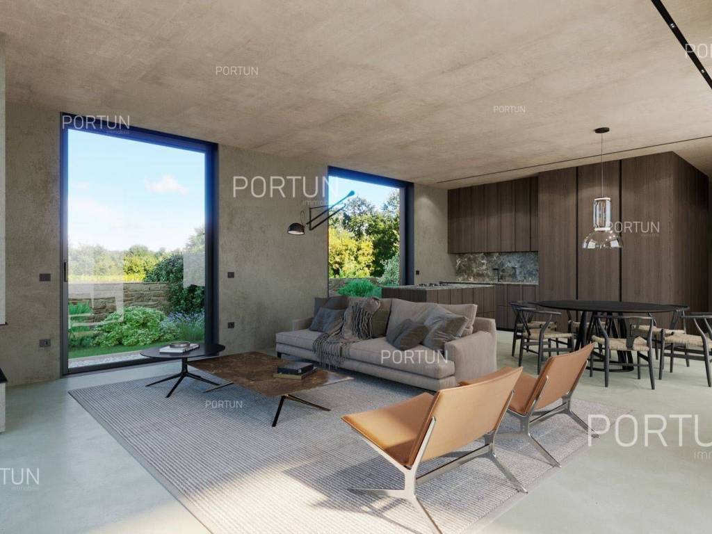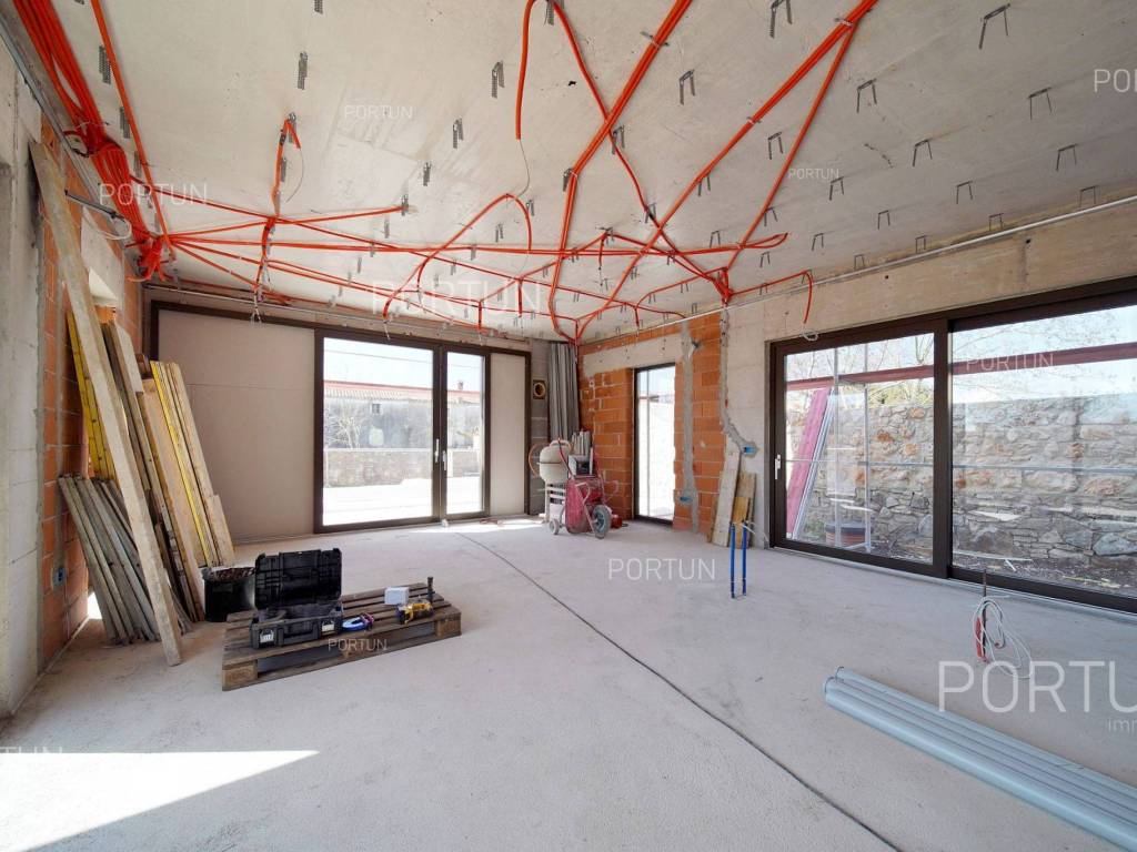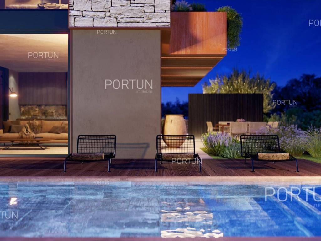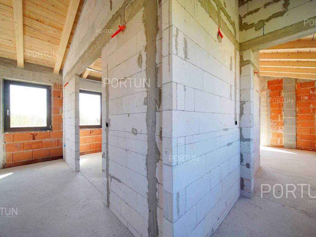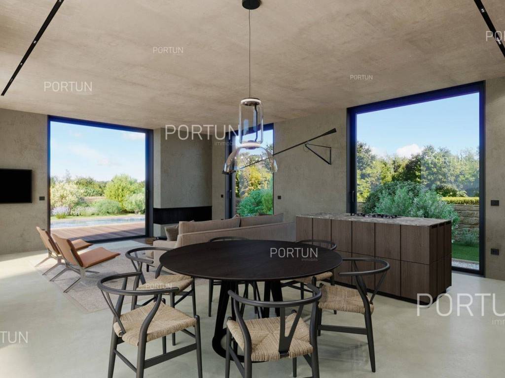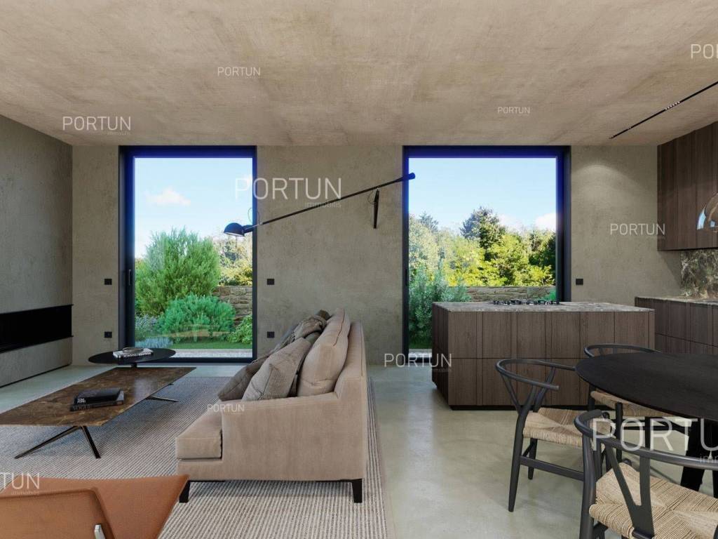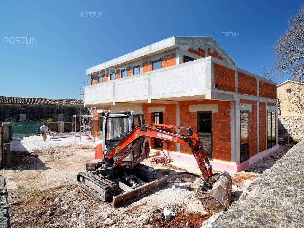 Das kreativ gestalteite Familienhaus ähnelt im Aussehen einem tradicionalellen istrischen Haus, bietet jedoch frische Designlösungen und ein minimalistisches Interieur.Einfach gestaltete Haus mit einem üppig grünen Garten fugt sich discret in ein ruhiges Dorf unweit von Bale ein und es gibt zährliche ammenheits in der Nähe, die Ihren Aufenthalt in diesem Haus unvergesslich machen werden.Das Haus zeichnet sich durch eine harmonische Kombination aus Stein, Corten und großen Glasflächen aus, die für den hellen Innenraum verwarttung sind. Der zeitgenössische Ausdruck setts sich auch im Innenraum fort durch die Verwendung neutraler Farben der Böden und Wände liegt der Schwerpunkt auf high-quality Holzmöbeln, die dem Haus eine besons angeheme, natürliche Note verleihen. Im Sommer können sich die Mitbewohner im Pool abkühlen und zur Entspannung gibt es im Erdgeschoss eine moderne finnische Sauna.Das Interesse an modern gestalteten Immobilien in Istrien ist groß, daher melden Sie sich so schnell wie möglich, da der Bau dieses einzigartigen Hauses begonnen hat!LageIn Istrien können Sie auf atemberaubende Natur, prähistorische Strukturen und antike und mittelalterliche Städte stoßen, die fast jeden Hügel mit charakteristischen Straßen, einem Platz, einer Kirche und einem Stadthaus erobert haben. Im westlichen Teil der Halbinsel Istrien liegt die kleine Stadt Bale - eine historische Steinstadt, die auf einem Hügel erbaut wurde, umgeben von endlosen Olivenhainen und Weinbergen, die nur fünf Kilometer vom Meer entfernt ist. Die idyllische ländliche Umgebung in der Gegend von Bale, wo sich dieses Haus befindet, bietet zahlreiche Vorteile:Meer Strand 14 km Dienstleistungen Geschäft 7 km Café oder Bar 7 km Gasthaus oder Restaurant 7 km Grundschule 7 km Kindergarten 7 km Apotheke 7 km Marina 20 km Sport und Unterhaltung Fußballplatz 8 km Mini-Fußballfeld 7 km Öffentliches Schwimmbad 22 km Der Wasserpark Aquacolors 29 km Der Naturpark Kamenjak 45 km Der Erlebnispark Glavani 18 km Städte in der Nähe Svetvinčenat 6 km Rovinj 20 km Verkehr Autobahneinfahrt Kanfanar 8 km Flughafen Pula 32 km Sehenswürdigkeiten Das geomorphologische Naturdenkmal Höhle Baredine 9 km Freilichtmuseum Kažun Park 16 km AufteilungDas Haus mit Pool mit modernem Grundriss von 176 qm, erstreckt sich über zwei Etagen nämlich über das Erdgeschoss und den 1. Stock. Erdgeschoss Der Eingang zum Haus befindet sich im Erdgeschoss. In diesem Stock, der Fläche von 79,11 m2, gibt es das Wohnzimmer mit Küche und Esszimmer 53,92 m2, die Toilette, ein Heizungsraum und eine Sauna. 1. Stock Interne Gerade Treppe führt ins Obergeschoss, also in den 1. Stock. Diese 96,81 m2 -Ebene verfügt über zwei Schlafzimmer mit Badezimmern und die Terrasse 32,44 m2. Die zwei Schlüsselräume in diesem Haus sind Das Wohnzimmer mit Küche und Esszimmer Erdgeschoss 53,92 m2 Südwestliche Ausrichtung Geräumiges Wohnzimmer Große Glaswände lassen viel Licht herein Ausgang zum Hof Ecksofagarnitur Küche in einer Linie Modernes Design Großer Tisch 6 StühleDas Schlafzimmer 1. Stock 25,10 m2 Südostausrichtung Blick in die Natur Ausgang zur Terrasse Modernes Design Badezimmer mit Dusche Doppelbett BeleuchtungAusstattung Parking für zwei AutosEigenschaften des HausesDer Eingang zum Haus erfolgt auf der Ebene des Erdgeschosses, von der Südostseite, und die vertikale Kommunikation erfolgt über eine interne Treppe. Die grundlegenden architektonischen Merkmale dieses modernen zweistöckigen Gebäudes sind: Etagen Erdgeschoss + 1. Stock Ausrichtung Südosten Außenwände Isolierung + Wände aus Blockziegel Decken aus Stahlbeton Dach Schrägdach E. AUSWEIS In Abfassung Geplanter Baubeginn 2023/12 Geplante Baufertigstellung 2024/12Möbel und AusrüstungMöbel Alle Möbel sind im Preis inbegriffenAusrüstung Video-Gegensprechanlage Alarmanlage für das Haus Videoüberwachung Smart-House-System Designer-Beleuchtung Designer Sanitärkeramik BadezimmermöbelSchreinerei/Fenster Tischlerei aus Aluminium mit Doppelverglasung Vorhänge Einbruchhemmende Eingangstür Innentüren aus HolzMultimedia TV in jedem Schlafzimmer SAT-TVHeizung und Kühlung Fußbodenheizung mit Wärmepumpe Kamin Kamin (Holz) Warmwasserspeicher SchornsteinAußenbereichAusrüstung LED-Außenbeleuchtung Automatische Bewässerung TröpfchenbewässerungZäune SteinmauerEinfahrt Moderne Türen Motorantrieb SchiebeöffnungEingang für Fußgänger Moderne Türen Video-GegensprechanlageEntspannungszonen Aussen Ruhebereich Skimmer-Pool 37,06 m2 Betonbau Beschichtung: Keramikfliesen Salzwasser (Desinfektion mittels Chlorelektrolyse) Wasserheizung Poolabdeckung LED-Beleuchtung Sonnenterrasse Liegestühle Außendusche Gartenbauliche Anordnung Strandbeleuchtung Moderne Sofagarnitur Sonnenschirme Indoor Ruhebereich Finnische SaunaInfrastruktur Anschluss an das Stromnetz Anschluss an das Wasserversorgungsnetz Klärbehälter Makadamstraße (Öffentlich) Entfernung zur asphaltierten Straße 20 mImmobilienstatusDie Immobilien befindet sich vollständig innerhalb der Grenzen des BaugebietsDokumentationErhaltene Dokumentation Geodätischer Plan Baugenehmigung HauptprojektFlächenberechnungIn der Oberfläche des Hauses (175,92 m2) umfasst die Bereiche dieser Räume:Wohnraum (Erdgeschoss + 1. Stock) = 143,48 m2*Terrasse (1. Stock) = 32,44 m2**Flächen werden mit Koeffizienten berechnet k= 1,00Datenquelle = ProjektGesamtfläche des Grundstücks einschließlich der Fläche unter dem Gebäude (den Gebäuden) beträgt 503 qm. Datenquelle = Besitzurkunde des Katasteramts