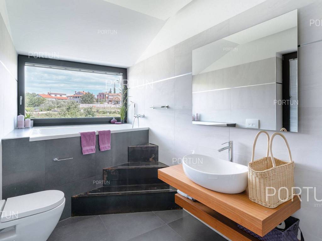 Diese atemberaubende Villa befindet sich in der charmanten Stadt Višnjan, die für ihre reiche Geschichte und malerischen Landschaften bekannt ist.Mit ihrer modernen Architektur und luxuriösen Ausstattung ist diese Villa ein wahres Juwel. Wenn Sie sich der Villa nähern, werden Sie sofort ihr elegantes Design und die Liebe zum Detail bemerken. Eines der herausragenden Merkmale dieser Villa ist der Swimmingpool mit Wasserfall, der für einen Hauch von Eleganz und Ruhe sorgt. Rund um den Pool finden Sie eine großzügige Sonnenterrasse, auf der Sie in der Sonne faulenzen oder ein erfrischendes Bad im kristallklaren Wasser genießen können. Der Poolbereich wird durch einen wunderschön angelegten grünen Garten ergänzt, der dem Außenbereich einen Hauch von Ruhe verleiht.Wenn Sie die Villa betreten, werden Sie von einem offenen Wohnzimmer, einer Küche und einem Essbereich begrüßt. Das Wohnzimmer ist so gestaltet, dass es Komfort und Stil bietet, mit modernen Möbeln und einer gemütlichen Atmosphäre. Die großen Glasöffnungen verbinden das Wohnzimmer nahtlos mit der Terrasse und dem Swimmingpool, ermöglichen atemberaubende Ausblicke und schaffen ein nahtloses Wohnerlebnis im Innen- und Außenbereich. Die Küche ist geräumig und mit modernen Geräten gut ausgestattet und bietet kulinarischen Enthusiasten den perfekten Raum, um köstliche Mahlzeiten zuzubereiten. Der an die Küche angrenzende Essbereich bietet einen eleganten Rahmen zum Genießen von Mahlzeiten mit Familie und Freunden. Die Villa verfügt über vier luxuriöse Schlafzimmer, die jeweils Komfort und Stil ausstrahlen. Besonders beeindruckend ist das Hauptschlafzimmer, das über ein eigenes Badezimmer und einen begehbaren Kleiderschrank verfügt und ausreichend Stauraum für alle Ihre Bedürfnisse bietet. Für diejenigen, die Entspannung und Erholung suchen, verfügt die Villa auch über einen Spa-Bereich mit Whirlpool. Darüber hinaus verfügt die Villa über ein Spielzimmer mit Billardtisch, das Raum für Unterhaltung und Freizeitaktivitäten bietet. Schließlich bietet die Villa von der ersten Etage aus einen atemberaubenden Meerblick, sodass Sie die Schönheit der umliegenden Küstenlandschaft genießen können. Egal, ob Sie einen Morgenkaffee genießen oder einen atemberaubenden Sonnenuntergang erleben, dieser Panoramablick wird Sie in Erstaunen versetzen.Zusammenfassend bietet diese moderne Villa in Višnjan eine faszinierende Mischung aus zeitgenössischem Design, luxuriöser Ausstattung und atemberaubender Aussicht. Vom Swimmingpool mit Wasserfall über die offenen Wohnräume, die geräumige Küche, vier Schlafzimmer, den Spa-Bereich mit Whirlpool, das Spielzimmer mit Billard bis hin zum atemberaubenden Meerblick aus der ersten Etage bietet diese Villa die perfekte Kombination aus Komfort, Eleganz und Ruhe.LageIstrien - eine herzförmige Halbinsel, die tief in das klare und blaue Wasser der Adria eingetaucht ist, ist ein verborgener Garten der Schönheit, der die Tür zum sonnigen und warmen Mittelmeer öffnet. Im westlichen Teil Istriens, zwischen dem Fluss Mirna und der Lim-Bucht, liegt die Stadt Višnjan - umgeben von fruchtbaren Olivenhainen und Weinbergen in den hügeligen Hügeln des Dorfes gelegen, ist sie heute weithin bekannt für ihr Observatorium, das die Entwicklung des Astrotourismus gefördert hat. Die ausgezeichnete Panoramalage im westlichen Teil Istriens, in der Nähe von Višnjan, wo sich die Villa befindet, ist ideal, um zahlreiche Einrichtungen und Attraktionen in der Nähe zu entdecken:Meer Strand 10 km Dienstleistungen Geschäft 1,3 km Café oder Bar 1000 m Gasthaus oder Restaurant 1000 m Grundschule 1,4 km Kindergarten 1,7 km Apotheke 1,8 km Marina 10 km Sport und Unterhaltung Fußballplatz 1,8 km Aqua Park Istralandia 17 km Der Rad- und Wanderweg Parenzana 3 km Der Erlebnispark 11 km Städte in der Nähe Poreč 10 km Verkehr Autobahneinfahrt 2 km Flughafen Portorož 32 km Sehenswürdigkeiten Das geomorphologische Naturdenkmal Höhle Baredine 6 km AufteilungDie modern gestaltete Villa mit offenem Grundriss von 393 qm, erstreckt sich über drei Etagen nämlich über den Keller, das Erdgeschoss und den 1. Stock. Keller Interne Gerade Treppe führt in den Keller, die unterste Etage dieser Villa. In diesem Stock, der Fläche von 100,00 m2, gibt es das Wohnzimmer mit Küche und Esszimmer, ein Schlafzimmer, ein Badezimmer mit Dusche, die Toilette, der Flur, ein Heizungsraum, 2x Sauna und ein Abstellraum. Erdgeschoss Der Eingang zur Villa befindet sich im Erdgeschoss. Diese 163,10 m2 -Ebene verfügt über ein Hauptwohnzimmer, eine Küche mit Esszimmer, ein Schlafzimmer, eine überdachte Terrasse, ein Badezimmer und ein Wellness. 1. Stock Interne Gerade Treppe führt in den 1. Stock, die höchste Etage dieser Villa. Dieser Stock mit 129,90 m2 verfügt über zwei Schlafzimmer, das Hauptschlafzimmer mit Badezimmer und Garderobe und zwei Terrassen. Die zwei Schlüsselräume in dieser Villa sind Das Wohnzimmer mit Küche und Esszimmer Erdgeschoss 74,80 m2 Südausrichtung Riesiger Wohnbereich Große Glaswände lassen viel Licht herein Ausgang zum Hof Ecksofagarnitur Kaffeetisch TV Moderne Beleuchtung U-förmige Küche Ausgestattet mit Haushaltsgeräten Küchentheke Herd Ofen Dunstabzugshaube Spülmaschine Weinkühler Kühlschrank mit Gefrierfach Bartheke Hochstühle Handgefertigter Tisch 8 Stühle (8x) Das Hauptschlafzimmer 1. Stock 40,20 m2 Südwestliche Ausrichtung Meerblick Ausgang zur Terrasse Modernes Design Garderobe Badezimmer mit Dusche Doppelbett BeleuchtungAusstattung Parking für drei AutosEigenschaften der VillaDer Eingang zur Villa erfolgt auf der Ebene des Erdgeschosses, von der Nordseite, und die vertikale Kommunikation erfolgt über eine interne Treppe. Die grundlegenden architektonischen Merkmale dieser modernen Villa sind: Etagen Keller + Erdgeschoss + 1. Stock Ausrichtung Süden Außenwände Isolierung aus Styropor 15 cm + Wände aus Blockziegel 25 cm Decken aus Stahlbeton Dach Stei