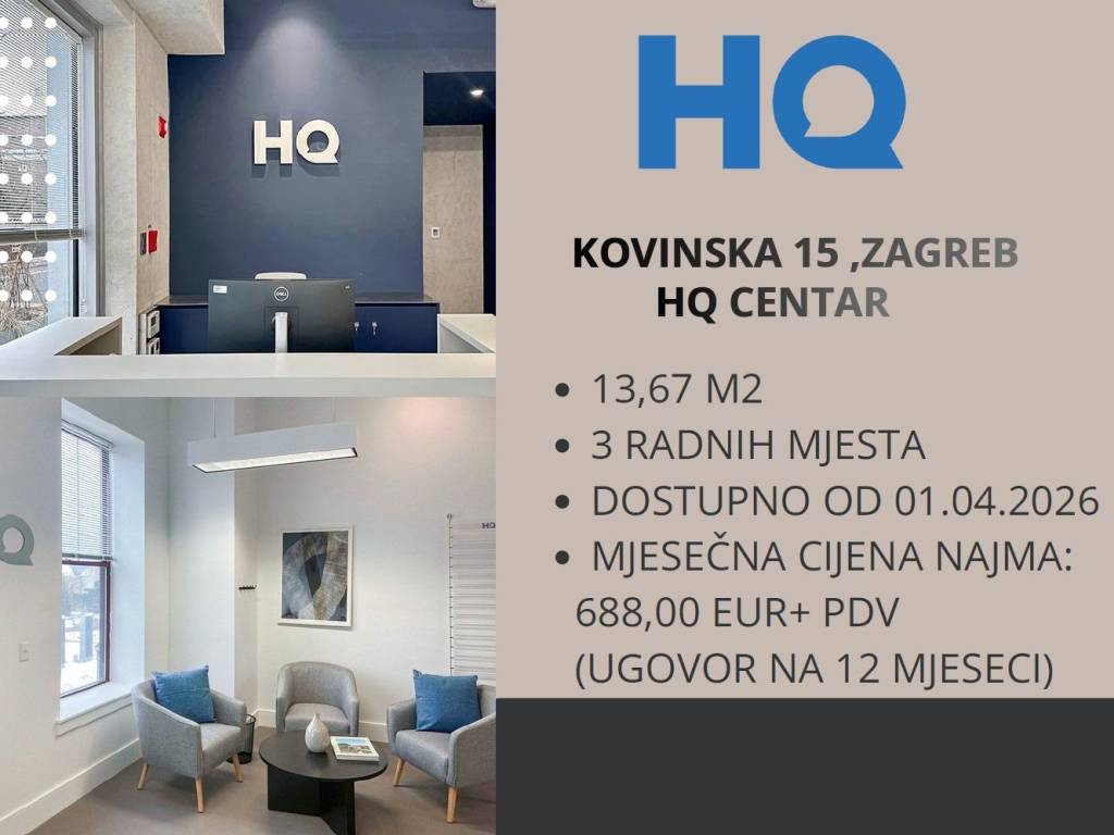 Ured 13,67 m2 - 3 radna mjesta 688 €/mjesečno + PDV!
