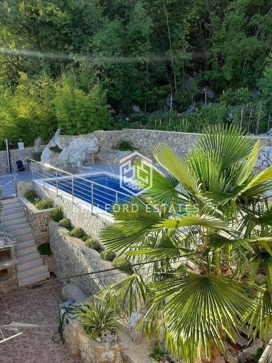 Stan se sastoji od: dvije spavaće sobe, dnevnog boravka, kuhinje, kupaonice i bazena.