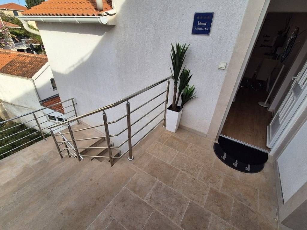 Diese modern möblierte 2-Zimmer-Wohnung steht zum Verkauf. Sie befindet sich im Zentrum von Supetar, im zweiten (obersten) Stock eines kleinen Wohnhauses mit insgesamt sechs Wohnungen. Die Wohnung hat eine Gesamtfläche von 36,8 m², eine angrenzende Terrasse von 5,7 m² und einen eigenen Parkplatz von 12,5 m². Die Wohnung ist nach Nordwesten ausgerichtet und bietet Meerblick. Sie besteht aus einem kleinen Eingangsbereich, einem Badezimmer, einer Küche, einem offenen Wohnbereich mit Zugang zur Terrasse (Nordseite) und zwei Schlafzimmern. Die Wohnung ist in einem sehr guten Zustand, komplett ausgestattet und modern möbliert. Die letzte Renovierung erfolgte vor einem Jahr. Die Immobilie ist verkehrsgünstig gelegen und sowohl das Zentrum von Supetar als auch der Strand sind nur 350 Meter entfernt. Dank ihrer ruhigen Lage in einem Wohngebiet mit wenig Verkehr eignet sie sich ideal zum Wohnen oder als Ferienimmobilie.
