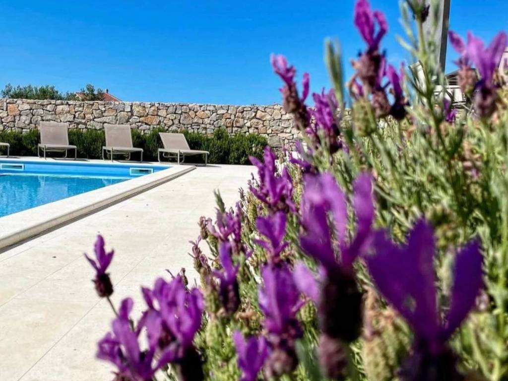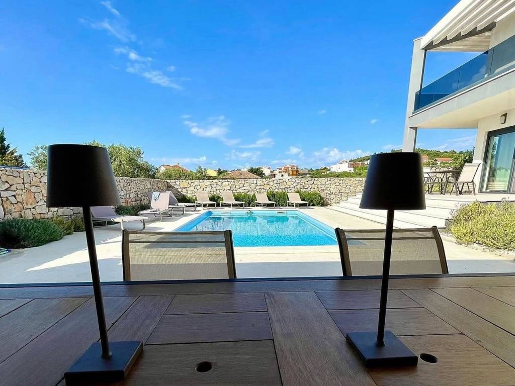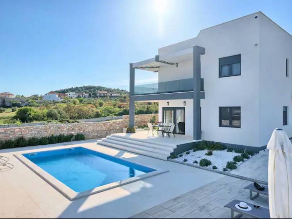 The property combines contemporary architecture, exceptional comfort, and breathtaking panoramic views of the sea, islands, and the town of Vodice.