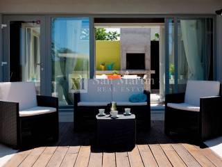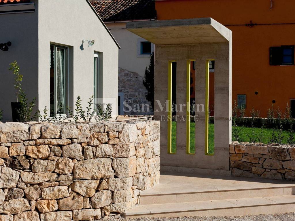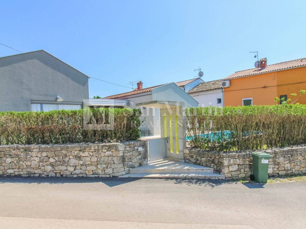 In der Nähe der Strände und der Stadt Poreč befindet sich diese wunderschöne moderne Ferienvilla mit einzigartigem Design. Der Grundriss, der an den Buchstaben H erinnert, trennt den Wohn- und Schlafbereich. Das Haus besteht aus einem Wohnzimmer, einer Küche mit Essbereich, drei Schlafzimmern, zwei Badezimmern und einer separaten Toilette. Das Wohnzimmer öffnet sich zum Garten, einem schönen Pool und einer Sonnenterrasse. Der Garten ist gepflegt und gut erhalten.