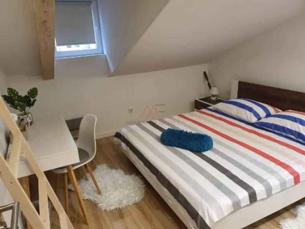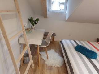 Na odličnoj lokaciji u blizini centra grada iznajmljuje se manji dvosobni stan s dnevnim boravkom u visokom potkrovlju. Režije se plaćaju prema vlastitoj potrošnji i vrlo su male. Polog obavezan.