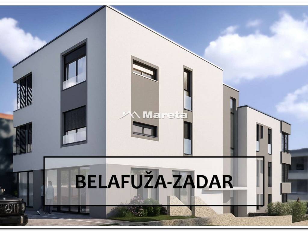 Na izvrsnoj lokaciji u zadarskoj četvrti Belafuža gradi se moderna zgrada s ukupno pet stambenih jedinica i poslovnim prostorom u prizemlju zgrade. Lift se proteže od podruma (garaže) do drugog kata. Dodatno se komunikacija odvija stubištem od podruma do drugog kata. Svi stanovi posjeduju po dva parkirna mjesta (garaže i vanjska PM). Stanu u prizemlju pripada vrt.