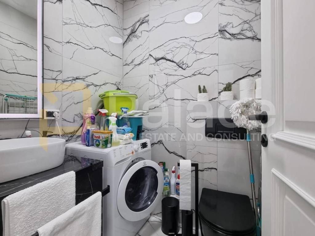 Das Apartment besteht aus zwei geräumigen Schlafzimmern, einem 10 m² großen Flur, einem Badezimmer, einem zusätzlichen Gäste-WC, einem Esszimmer sowie einer Küche und einem Wohnzimmer, die zu einem harmonischen offenen Konzept verbunden sind. Die Terrasse mit Blick auf den Pool bietet einen idealen Ort zum Entspannen oder zum geselligen Beisammensein an der frischen Luft, während die moderne Einrichtung jedes Zimmer garantiert, dass jeder Moment hier ein Genuss sein wird.