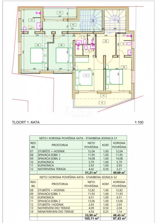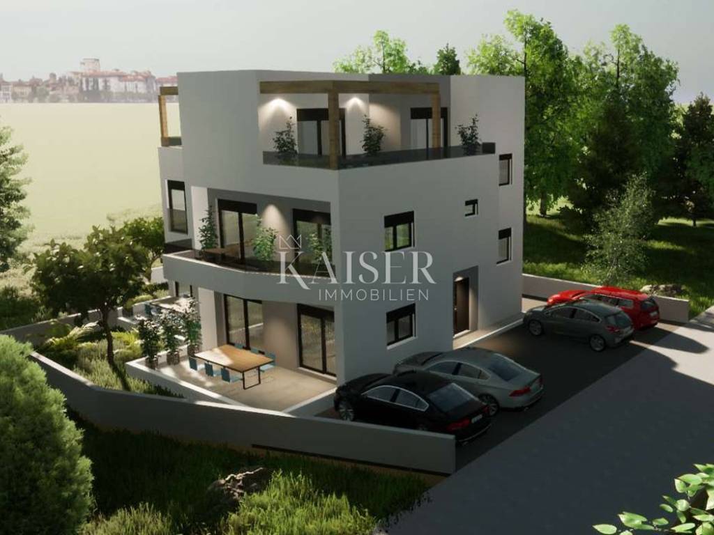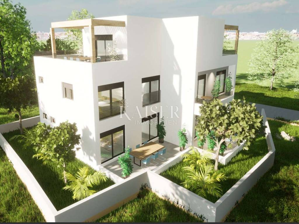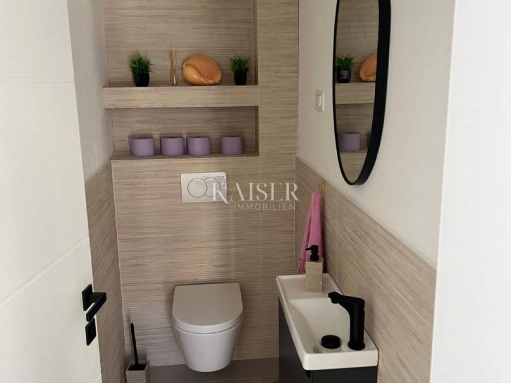 Kaiser Immobilien präsentiert stolz: Modernes dreistöckiges Haus (S1) mit Meerblick in Srima. In Srima, einer der begehrtesten Lagen an der Riviera von Šibenik, nur 300 Meter vom Meer entfernt, befindet sich dieses wunderschöne, moderne Doppelhaus. Die Wohneinheit S1 erstreckt sich über drei Etagen und bietet die perfekte Kombination aus Luxus, Komfort und mediterranem Lebensstil – ideal für eine große Familie oder als erstklassige Kapitalanlage zur touristischen Vermietung. ÜBER DIE IMMOBILIE: Diese außergewöhnliche Immobilie bietet alle Annehmlichkeiten eines Hauses – Großzügigkeit, Privatsphäre und einen eigenen Garten. Mit einer Gesamtnutzfläche von 130,57 m² wurde jeder Winkel sorgfältig gestaltet, um maximalen Komfort und Funktionalität zu bieten. Bezeichnung: Wohneinheit S1 Gesamtnutzfläche: 130,57 m² AUFTEILUNG NACH ETAGE: ERDGESCHOSS (Nutzfläche 47,10 m²): Wohnbereich: Großzügiges offenes Raumkonzept, das Wohnzimmer, Küche und Esszimmer verbindet (26,53 m²). Zusätzliche Räume: Eingangsbereich, Gäste-WC, Waschküche und Technikraum. Terrasse: Große, unüberdachte Terrasse (18,75 m²) mit direktem Zugang zum privaten Garten. ERDGESCHOSS (Nutzfläche 49,00 m²): Zwei Schlafzimmer: Großzügiges Hauptschlafzimmer (14,08 m²) und zweites Schlafzimmer (11,95 m²). Zwei Badezimmer: Diese Etage bietet außergewöhnlichen Komfort mit zwei separaten Badezimmern (5,79 m² und 2,93 m²). Überdachte Terrasse: Zusätzliche überdachte Terrasse (4,42 m²). OBERGESCHOSS (Nutzfläche 34,47 m²): Hauptetage: Die gesamte Etage ist als luxuriöser privater Bereich gestaltet und besteht aus: Hauptschlafzimmer (14,41 m²). Privates Badezimmer en suite (2,93 m²). Spektakuläre Terrasse: Großzügige Terrasse (23,03 m²) mit herrlichem Meerblick. GARTEN UND WEITERE VORTEILE: Privater Garten: Genießen Sie Ihre eigene grüne Oase – ideal zum Entspannen, Spielen für Kinder oder geselliges Beisammensein. Zwei Parkplätze: Das Anwesen verfügt über zwei sichere Parkplätze. Drei Terrassen: Jede Etage bietet einen eigenen Außenbereich mit unterschiedlichen Möglichkeiten zum Verweilen. LAGE: Srima ist bekannt für seine wunderschönen Strände und das kristallklare Meer und bietet gleichzeitig Ruhe und eine entspannte Atmosphäre. Die Nähe zu Vodice gewährleistet die Verfügbarkeit aller städtischen Einrichtungen, Restaurants, Cafés und des Nachtlebens. Diese Immobilie ist eine seltene Gelegenheit auf dem Markt, die Großzügigkeit des Hauses mit modernem Design und einer erstklassigen Lage vereint. Lassen Sie sich diese Chance nicht entgehen! Die Maklerprovision für den Käufer beträgt 3 % zzgl. MwSt. und wird im Falle eines Immobilienkaufs mit Abschluss der ersten notariellen Urkunde fällig. Eine Besichtigung ist nur nach vorheriger Unterzeichnung eines Vermittlungsvertrags für Immobilientransaktionen möglich. Wenn Sie die Immobilie persönlich besichtigen möchten, kontaktieren Sie bitte: Joško Bašić E-Mail: josko@kaiser-immobilien.hr Telefon: +385-91-511-2993