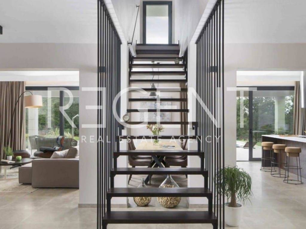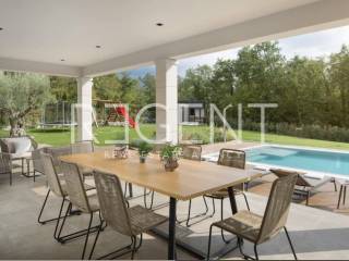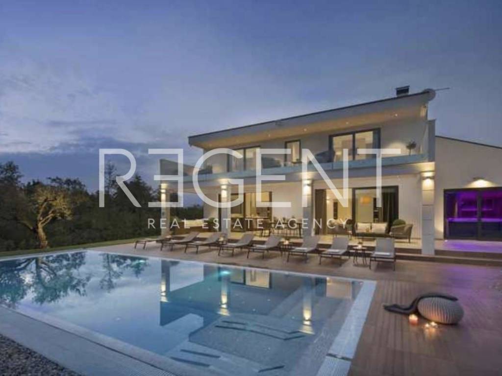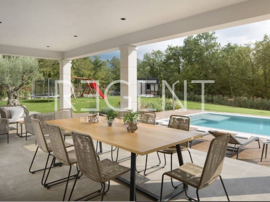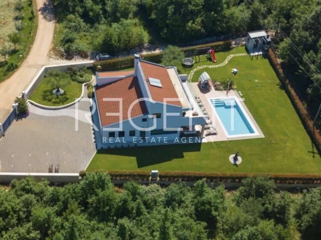 In Istrien, in dem wunderschönen kleinen Ort Višnjan, befindet sich eine elitäre, freistehende, geräumige Villa mit einer Gesamtwohnfläche von 250 m2 auf einem Grundstück von 1659 m2. Sie besteht aus: einem Wohnzimmer, das mit dem Esszimmer und einer erstklassig ausgestatteten Küche mit einer speziell entworfenen Kochinsel verbunden ist. Die Villa besteht aus vier Schlafzimmern, jedes mit eigenem Bad. Zwei Schlafzimmer befinden sich im Erdgeschoss und zwei im Obergeschoss. Der Außenbereich bietet uns eine überdachte Veranda mit Sommerküche, die sich direkt neben dem Pool befindet. Es steht auch ein ausgezeichneter Wellnessbereich mit Sauna und Whirlpool zur Verfügung. Das Haus verfügt über ein erstklassiges Designer-Interieur/Exterieur und befindet sich in idealer Lage, abseits von Hektik und Lärm, und bietet absolute Entspannung und Erholung, gleichzeitig aber nur 25 Autominuten vom Zentrum von Poreč und 15 Minuten vom Zentrum von Višnjan entfernt.
