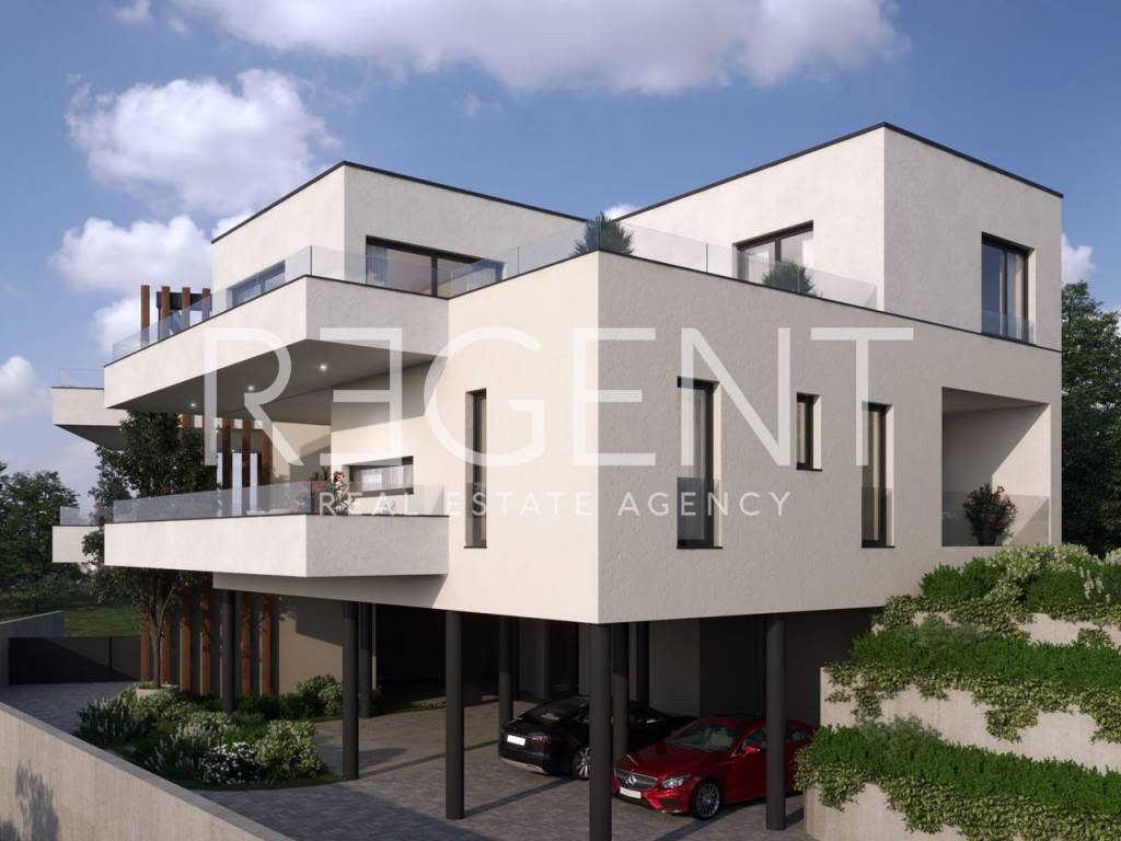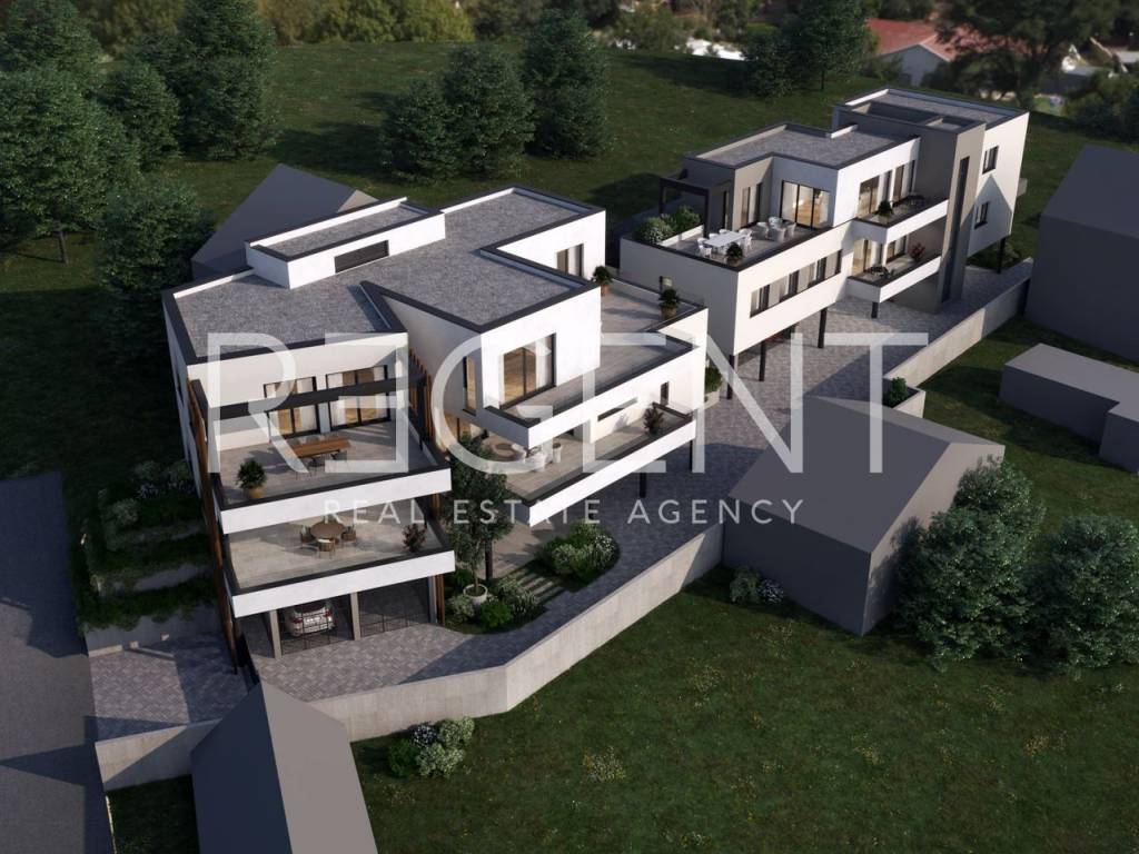 Diese luxuriöse Stadtvilla in Šestine, am Fuße des Sljeme gelegen, ist eine außergewöhnliche Immobilie, die erstklassige Bauqualität mit modernem Design und hohen Ausstattungsstandards verbindet. Die Wohnung im 2. Stock erstreckt sich über eine Nettonutzfläche von 79,97 m2 und zeichnet sich besonders durch die luxuriöse Ausstattung und die gebotenen Raumvorteile aus. Die Wohnung besteht aus einer gut durchdachten Raumaufteilung mit Eingangsbereich (3,92 m2), WC (2,94 m2), Schlafzimmer (11,72 m2), Badezimmer (5,32 m2), Wohnzimmer mit Küche und Esszimmer (34,23 m2), Terrasse (9,44 m2), überdachter Parkplatz (9,41 m2). Die Ausstattung der Wohnung entspricht höchsten Standards, einschließlich einer Stahlbetonkonstruktion mit erdbebensicheren Fundamenten, Energieeffizienz nach höchsten Standards, Heiz-/Kühlsystem über Wärmepumpen, hochwertige Aluminiumfenster und -türen mit dreifach verglasten IZO-Gläsern, Moskitonetzen und elektrischen Rollläden. Italienische Keramik und Sanitäranlagen sowie Parkett von höchster Qualität unterstreichen zusätzlich den luxuriösen Eindruck des Raumes. Die Lage dieser Immobilie ist außergewöhnlich, mit der Nähe zu Schulen, Kindergärten, Geschäften, Cafés, Bars NPU und einer ausgezeichneten Verkehrsanbindung. Der Bau dieser Villa soll Ende 2024 abgeschlossen sein.